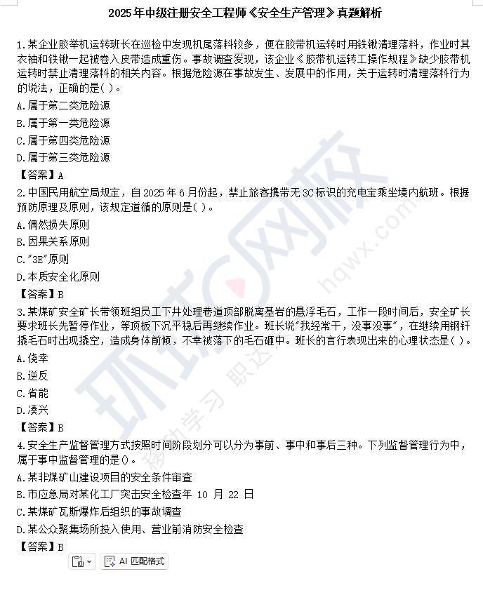 2025中级注册安全工程师《安全生产管理》科目考试圆满结束!点击链接>>://m.hqwx.com/zjzcaqgcs-kaoshi/ziliaolm/0/17674/,查看并免费下载真题解析!