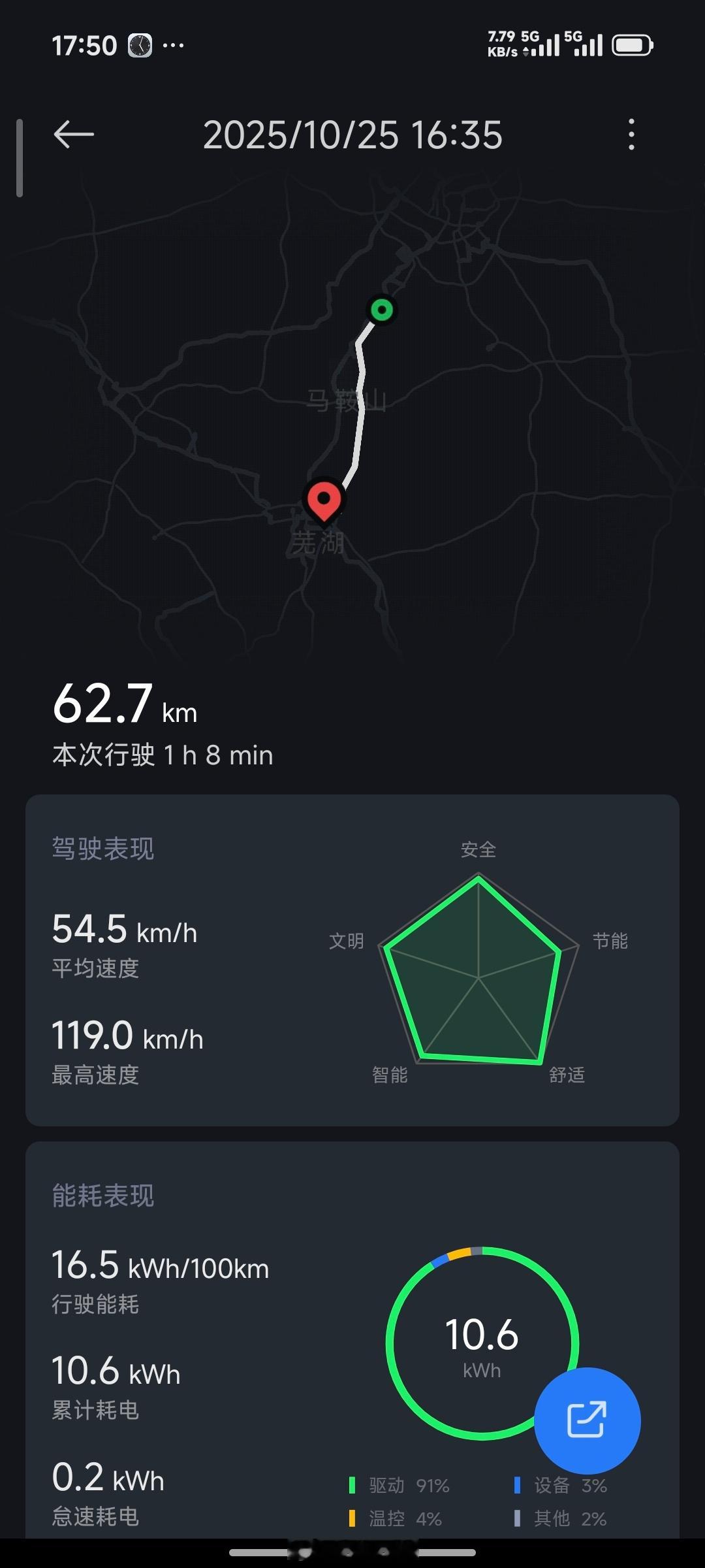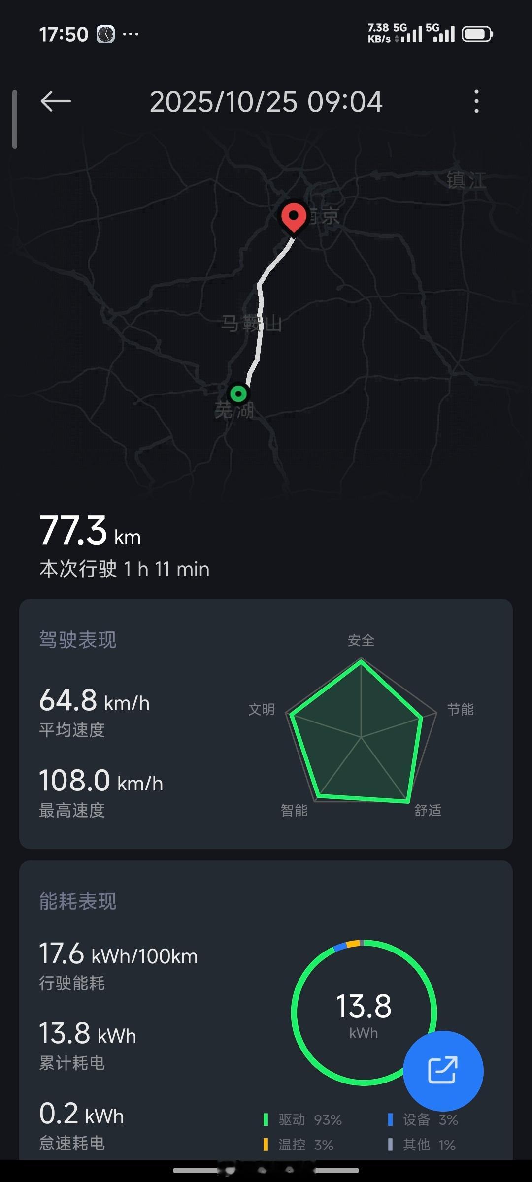 今天跑了一趟南京来回,高速能耗 17 左右 [努力][努力][努力]