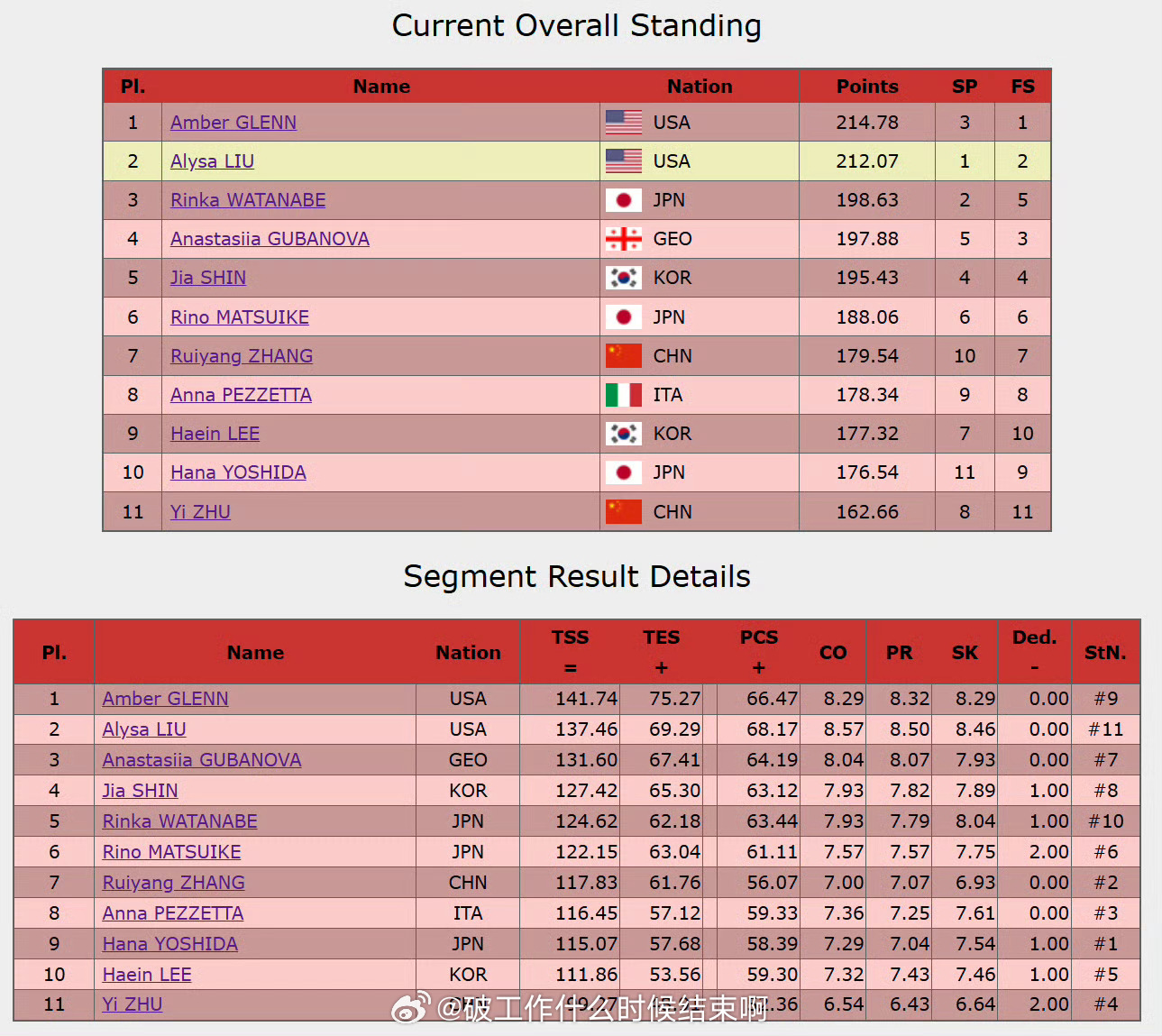 ⛸️张瑞阳总成绩第7(179.54分),朱易162.66第11。朱易中国杯第11💥朱易自由滑