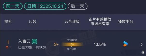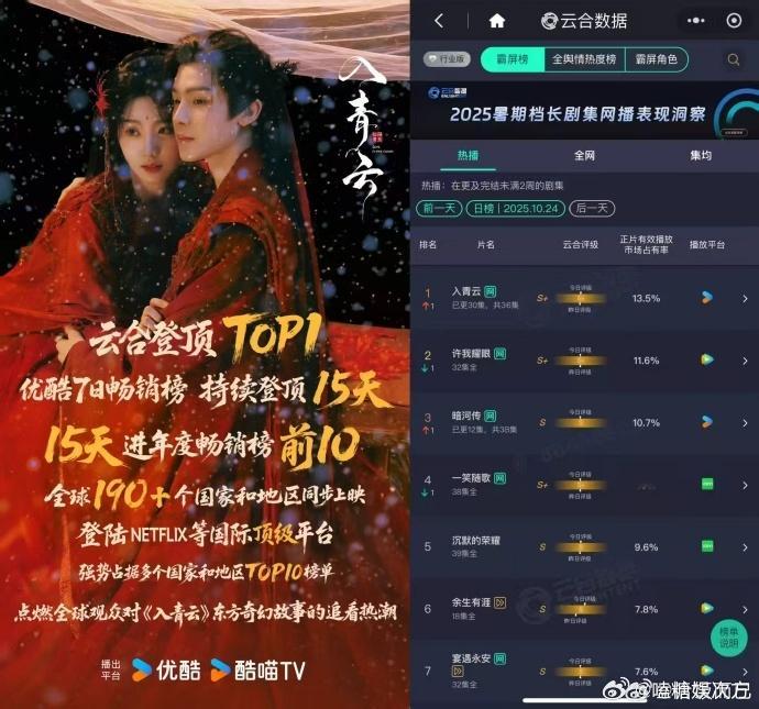 入青云15天进畅销榜前10跟朋友连麦追《入青云》,看到云合登顶的时候我俩直接尖