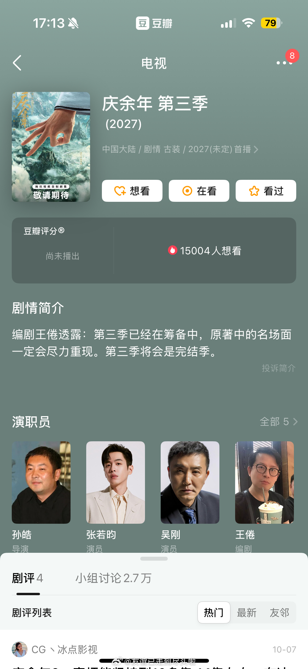 张若昀最近的🫓:电影、搭刘诗诗陈道明的千里江山图、男频爆ip庆余年、第一部成绩就不错丁黑的警察荣誉(赵冬苓编剧)