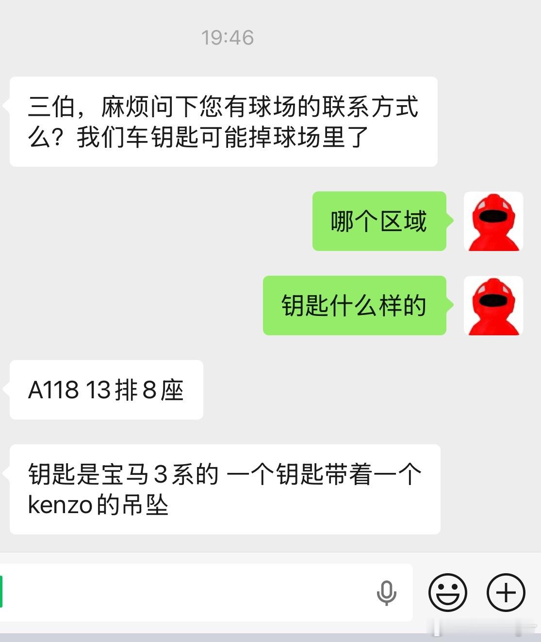 球迷疑似在A118 13排丢失车钥匙一串,麻烦看到的球迷帮忙转发一下,有线索评论或私信我,谢谢。