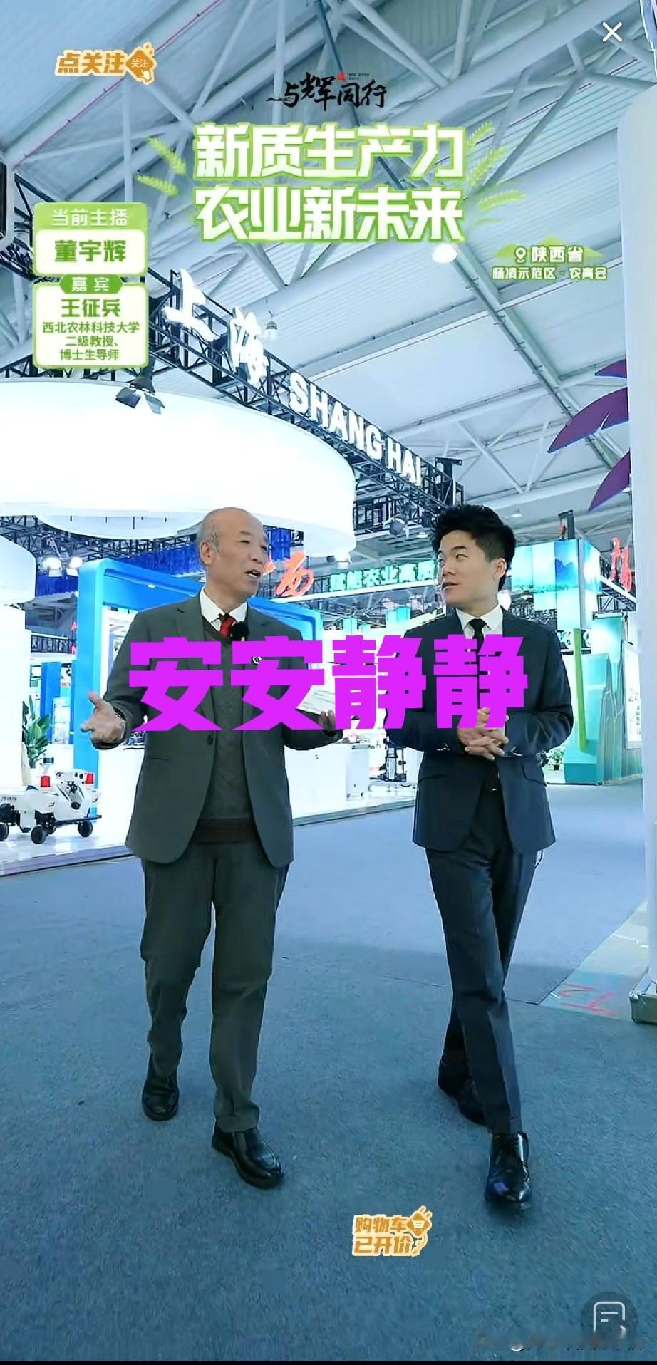 这是清场了吗?鲜少看到人流 ,就连各个展馆的工作人员也不像上一次一样看到董宇辉都争先恐后的介绍自己的产品。 这是主办方吸取上次经验,不能因为宇辉身上的流量而让他陷入困扰,徒增烦恼和工作量。每一次外场都有他该做的事情,让他安安静静地做自己该做的,而不是该迎合一部分打着爱的名义为自己谋利的一些人。