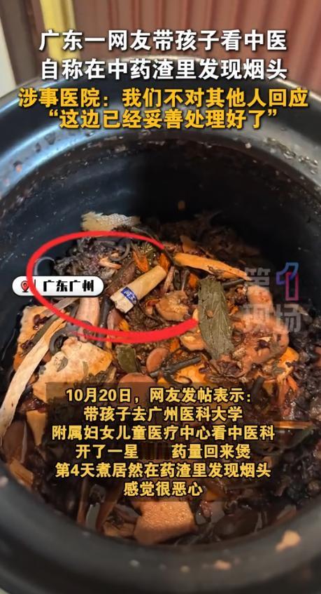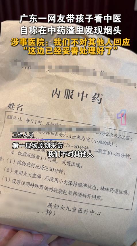 “赔得起吗?”广东广州,一家长带孩子去医院看病,抓了1个星期的中药回家,第4天煎中药时,意外在药渣中发现了个烟头!医院立即展开调查,不仅给家长全额退款,还进行了诚恳的道歉。网友:烟头是哪来的? 据第一现场10月22日报道,这事发生在20日,这位家长的孩子因为换季生了病,就去医院开了七天的中药回家调理。 当爹妈的,都把孩子看得比天大,每天都小心翼翼地按时煎药,盼着孩子快点好起来,前三天,一切正常。 可到了第四天,就在他准备倒掉药渣的时候,一个黄白色的东西让他心里咯噔一下,他用筷子扒拉开药渣,定睛一看,竟然是一个完整的烟屁股! 那一刻,这位家长感觉一阵恶心和后怕涌上心头,家里没人抽烟,这烟头只可能来自那包中药,一想到已经给孩子喝了三天的药,谁知道里面还混了些什么脏东西,他的手都开始发抖。 这哪里是治病的良药,简直就是在给孩子的身体里“投毒”!他立刻拍下照片,发到网上,同时火速联系了医院,必须要个说法。 医院的反应倒是很快,看到消息后马上就说要调查,没过多久,医院就给了答复,先是全额退了药费,然后态度诚恳地道了歉。 可对于烟头的来源,医院的解释却让这位家长和所有关注这件事的网友们,心里的火更大了,医院说,他们中药房的员工不抽烟,而且这些药材都是供应商密封包装好送过来的,他们医院的人根本没机会打开包装接触到里面的药材。 言下之意,这锅得供应商来背,跟医院关系不大,这个解释就像一滴水掉进了滚烫的油锅,瞬间激起了千层浪。 一句“赔得起吗?”成了所有人心中的疑问,退款道歉就完了?这可不是买件衣服不合身,这是吃进肚子里的药,是给一个生病的孩子吃的!万一孩子喝了这混着烟头汤的药,身体出了什么问题,这点退款赔得起孩子的健康吗? 很多网友直接就炸了,有人说:“这家长脾气也太好了吧?要是我,非得把事情闹大不可!这跟谋财害命有什么区别?” 确实,大家愤怒的点在于,这不是一个简单的失误,它暴露了药品安全链条上一个巨大的、令人恐惧的漏洞。 医院一句“密封包装”,就想把自己摘得干干净净,这显然无法服众,有网友一针见血地指出:“你是医院,是给病人开药的最后一道关卡,难道进货的时候连最基本的抽检都没有吗?验收环节是摆设吗?把责任全推给供应商,你的责任在哪里?” 是啊,作为专业的医疗机构,难道不应该对患者的生命安全负有更重的责任吗?如果连进货的药材质量都保证不了,那患者还怎么信任你? 更让人细思极恐的是,这个烟头到底是怎么“过五关斩六将”,最终出现在药包里的?很快,就有自称在药材市场工作过的人出来爆料,说在一些药材的初加工场地,卫生条件简直不堪入目。 工人们光着手处理药材,一边干活一边抽烟是家常便饭,烟灰、烟头掉进去根本没人管,这个说法让很多人倒吸一口凉气。 原来,问题的根源可能在最开始的生产环节就已经烂掉了,从药材的采摘、晾晒、切片,再到包装、运输、入库,最后到医生开方、药师抓药,这么长的链条,一个显眼的烟头竟然能一路“绿灯”,畅通无阻。 这说明什么?这说明每一环的监管都可能形同虚设,这已经不是某个工人不小心的问题了,而是整个生产和监管体系都出了大问题,这次是家长眼神好,发现了一个看得见的烟头。 可那些看不见的呢?比如超标的农药残留,发霉产生的黄曲霉素,还有重金属,这些东西混在药材里,我们肉眼根本看不出来。 等喝出问题的时候,可能一切都晚了,想到这里,谁能不害怕? 这件事让很多人对中药的信任产生了动摇。 一位学中药的网友气愤地说:“我们行业的好名声,就是被这些不负责任的生产商和疏于监管的环节给毁掉的!” 本来中药承载着几千年的智慧,讲究的是治病救人,可现在连最基本的干净卫生都保证不了,还谈何疗效?这不只是对患者的不负责任,更是对中医药文化的亵渎。 网上甚至出现了一种无奈的调侃:“以后喝中药前,是不是得先买个筛子,自己在家先筛一遍?” 这句玩笑话里,饱含着多少普通人的失望、愤怒和深深的不安,我们还能相信谁?当我们把健康乃至生命托付给医院和医生时,得到的却可能是混着烟头的药渣。 这件事绝不能以退款道歉画上句号。它必须成为一个警钟,狠狠地敲在每一个药品生产者、销售者和监管者的心上。 必须建立起从田间到药碗的全程可追溯体系,让每一包药材都能找到它的源头,同时,必须加大惩罚力度,一旦发现问题,就要让相关企业和个人付出沉重的代价,罚到他们倾家荡产,罚到他们再也不敢拿别人的生命开玩笑。 毕竟,人命关天,当孩子的健康受到威胁时,再多的钱也赔不起一个家庭的未来。 信源:第一现场2025-10-22——广东广州,网友发帖表示:带孩子去广州医科大学附属妇女儿童医疗中心看中医科,开了一星期的药量回来煲,第4天煮居然在药渣里发现烟头,感觉很恶心。