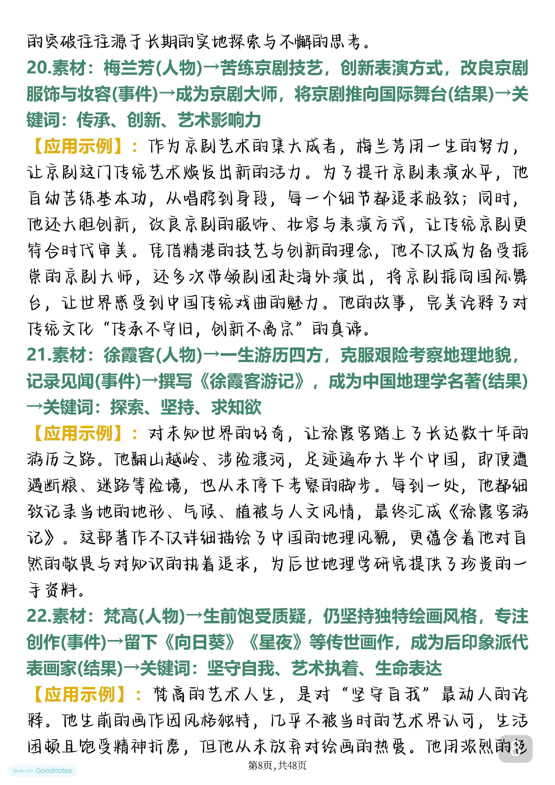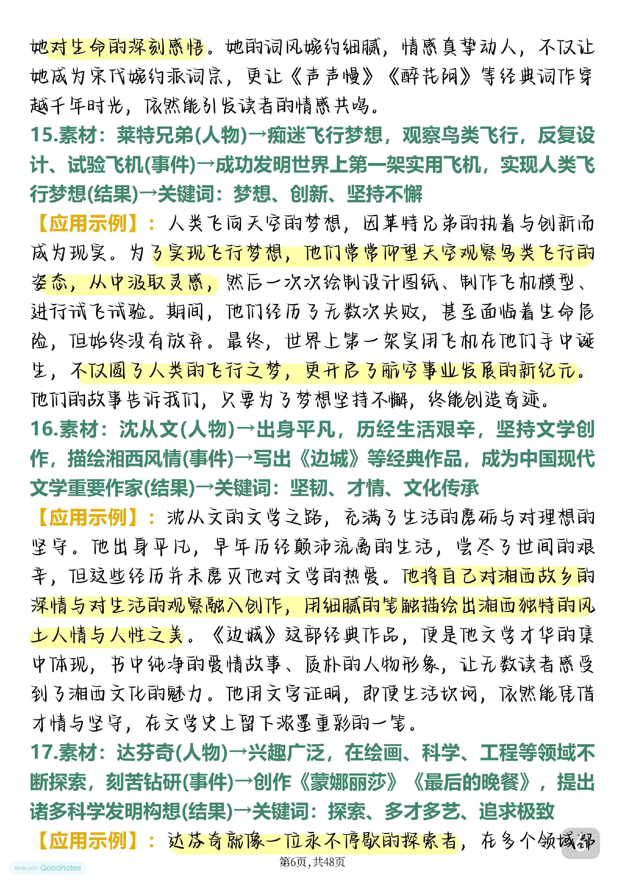 “当你把这些人物写进作文里,落笔生花”,写作文不要再适用烂大街的司马迁等等了,语文老师看腻了的素材,不会给你很高的分,平时多积累人物素材,写作文的时候举例进去,让语文老师耳目一新,怎么会不给你高分作文素材