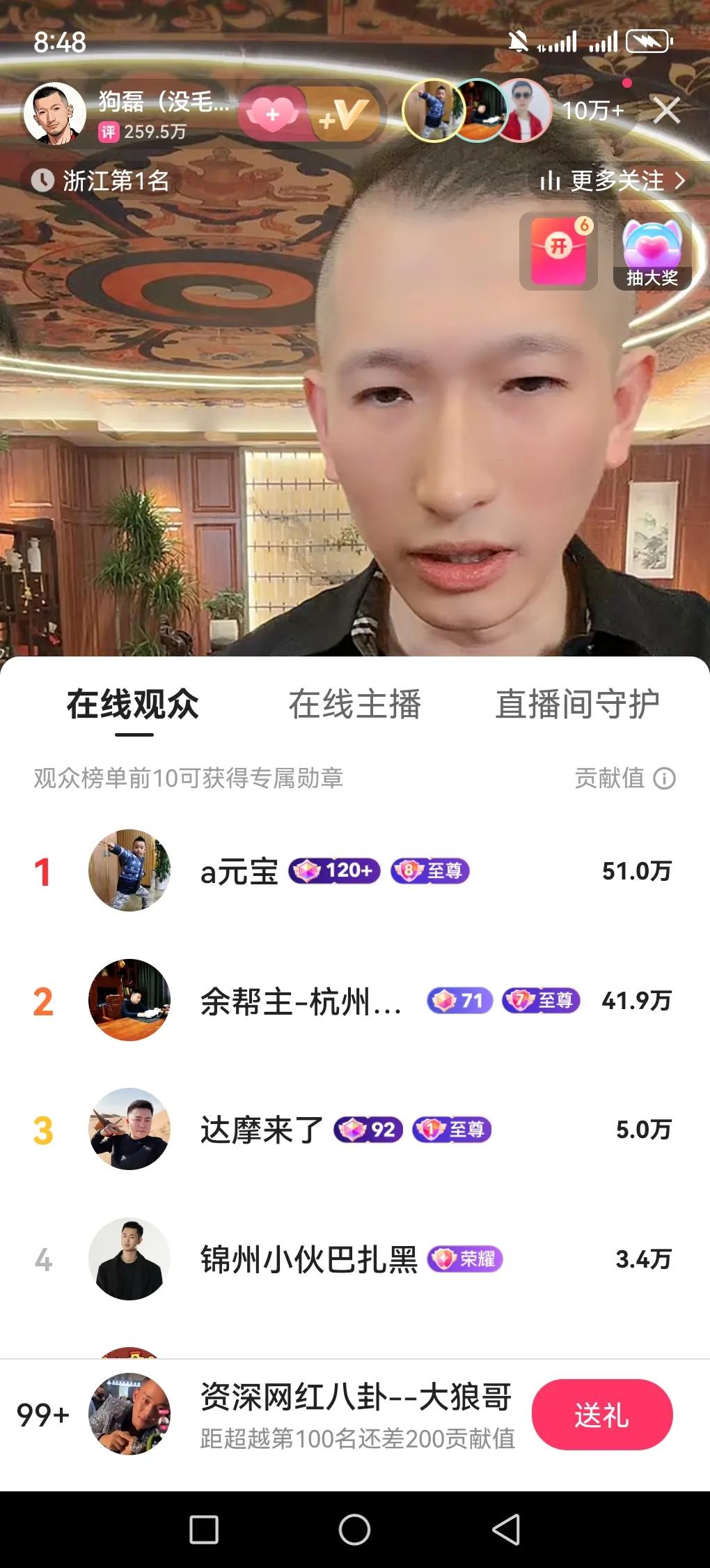 第一代网黑鼻祖狗磊今日首秀,直播间高达两百万人,陪狗磊首秀的有:方丈,天津李四,巴扎黑,聪明的人一下就看出来这些人都是老葛的人,他们基本都是用老葛的供应链,没想到,网黑鼻祖狗磊居然像老葛低头了,狗磊肯定和老葛合作了,开播地就是杭州,狗磊首秀并没卖货,称如果卖货能赚一千万!但他不愿意割韭菜,但后期肯定要用老葛的货卖货的,老葛的战队都是这样看起来流氓黑社会的人,那李四和方丈赌播都是输上亿的人还一身纹身,巴扎黑更厉害直接持管制家伙,真是人以群分,物以类聚,要说狗磊更是第一网黑,曾4V20直接让弟弟阳少牺牲,KS也是没底线,让这些反复进去踩缝纫机,犯罪的人出来直播,说白了就是为了人气,果然,开播半小时,狗磊直播间被封,因为广大网友都举报导致的,看来还是很多网友正能量。