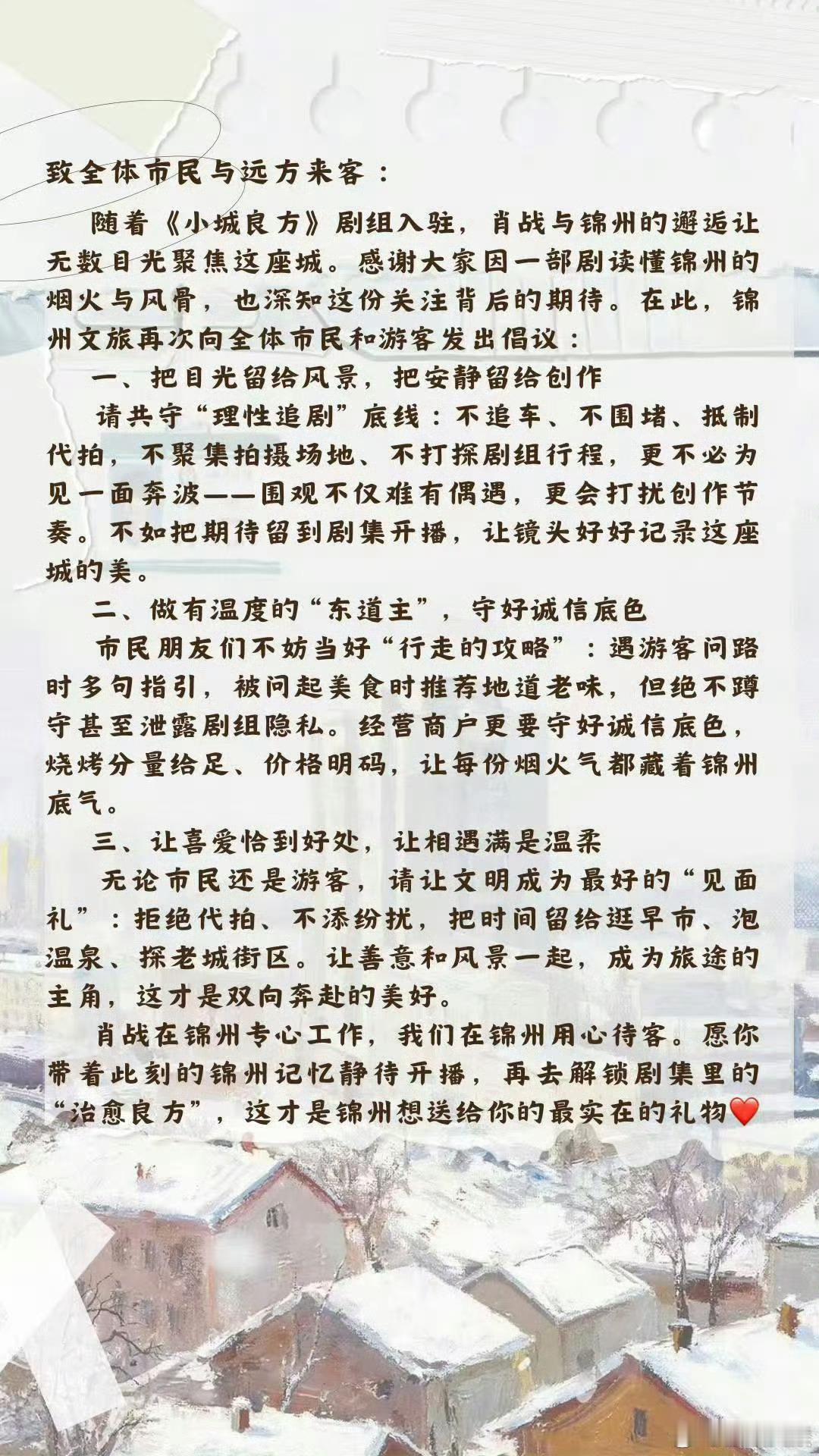锦州文旅致全体市民和游客的一封信锦州文旅呼吁市民游客理性追剧锦州文旅呼吁市民游客理性追剧,好好, 好