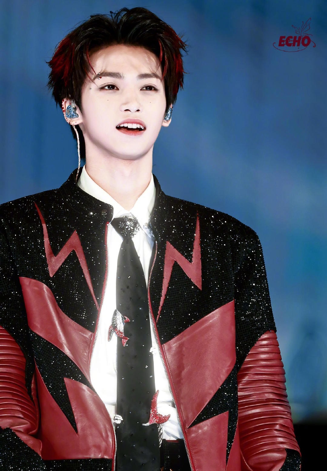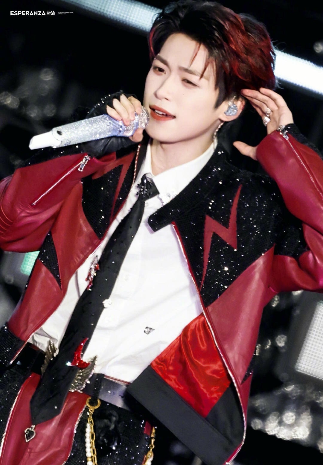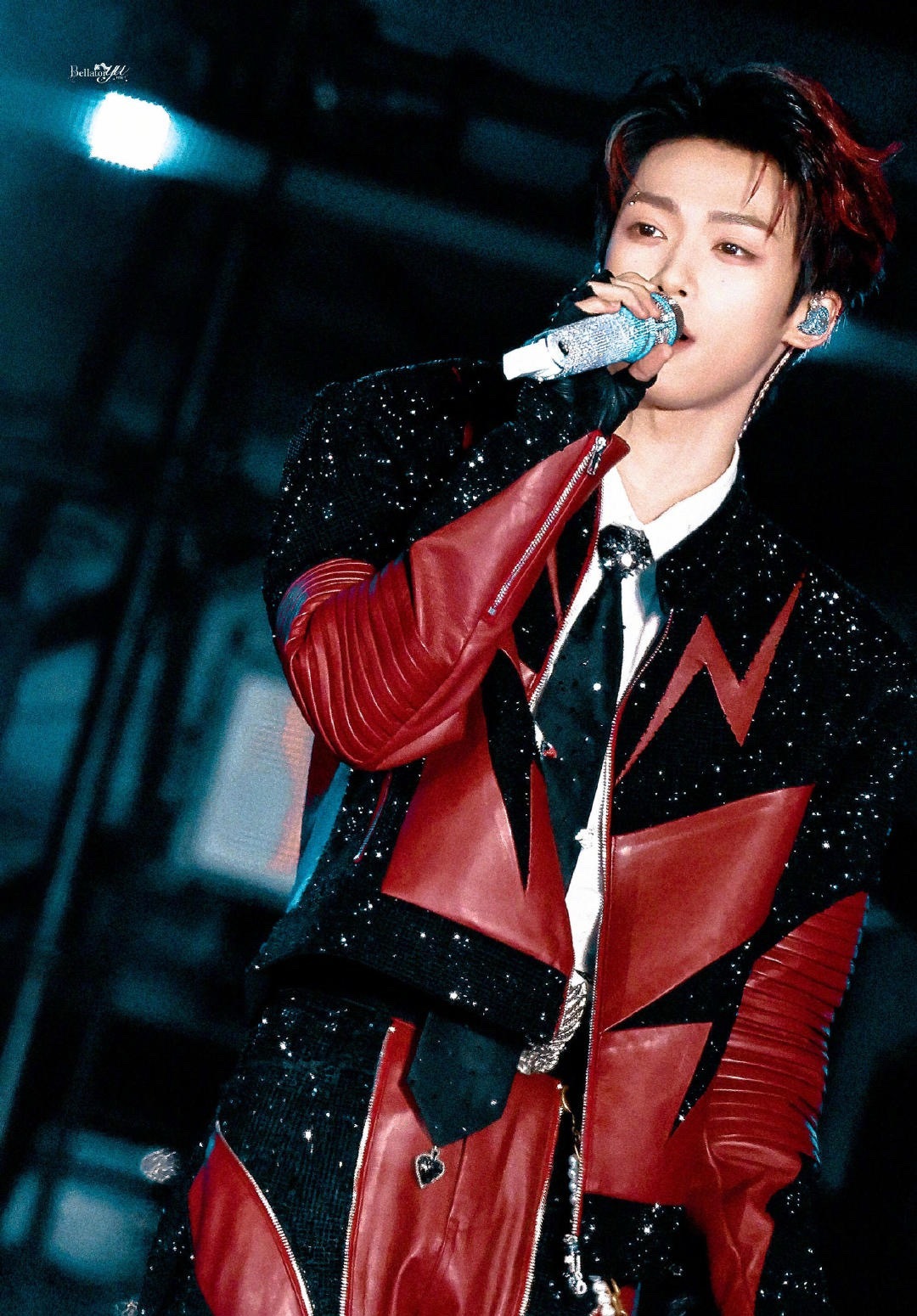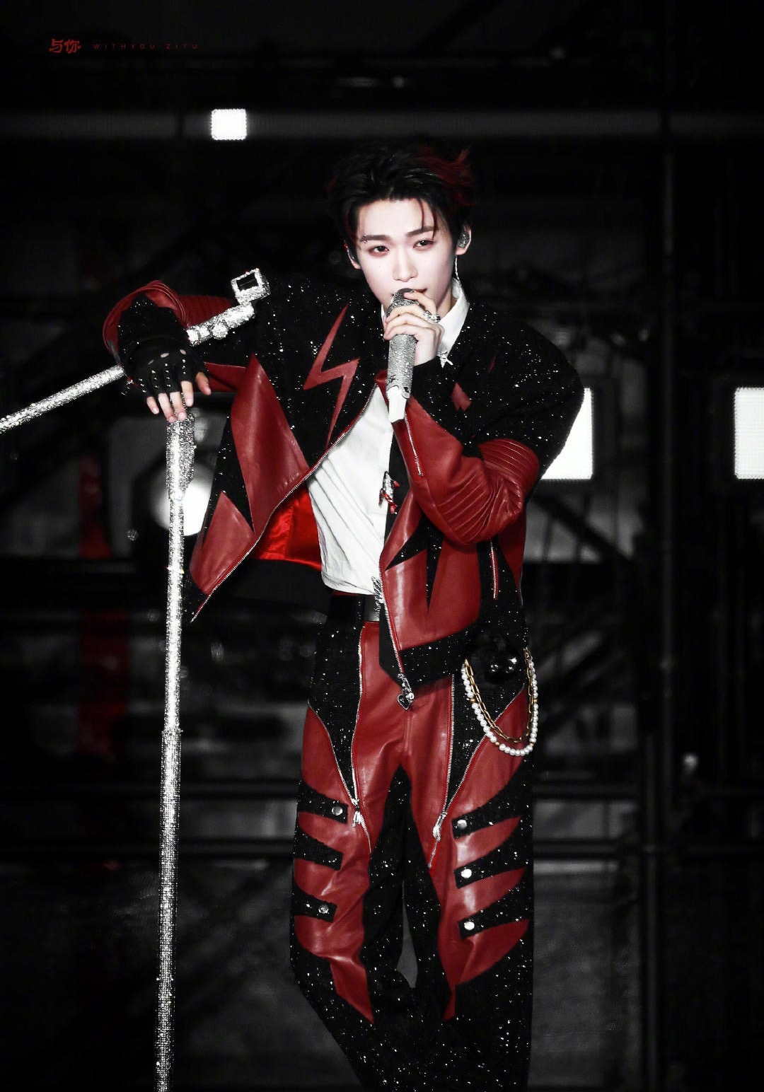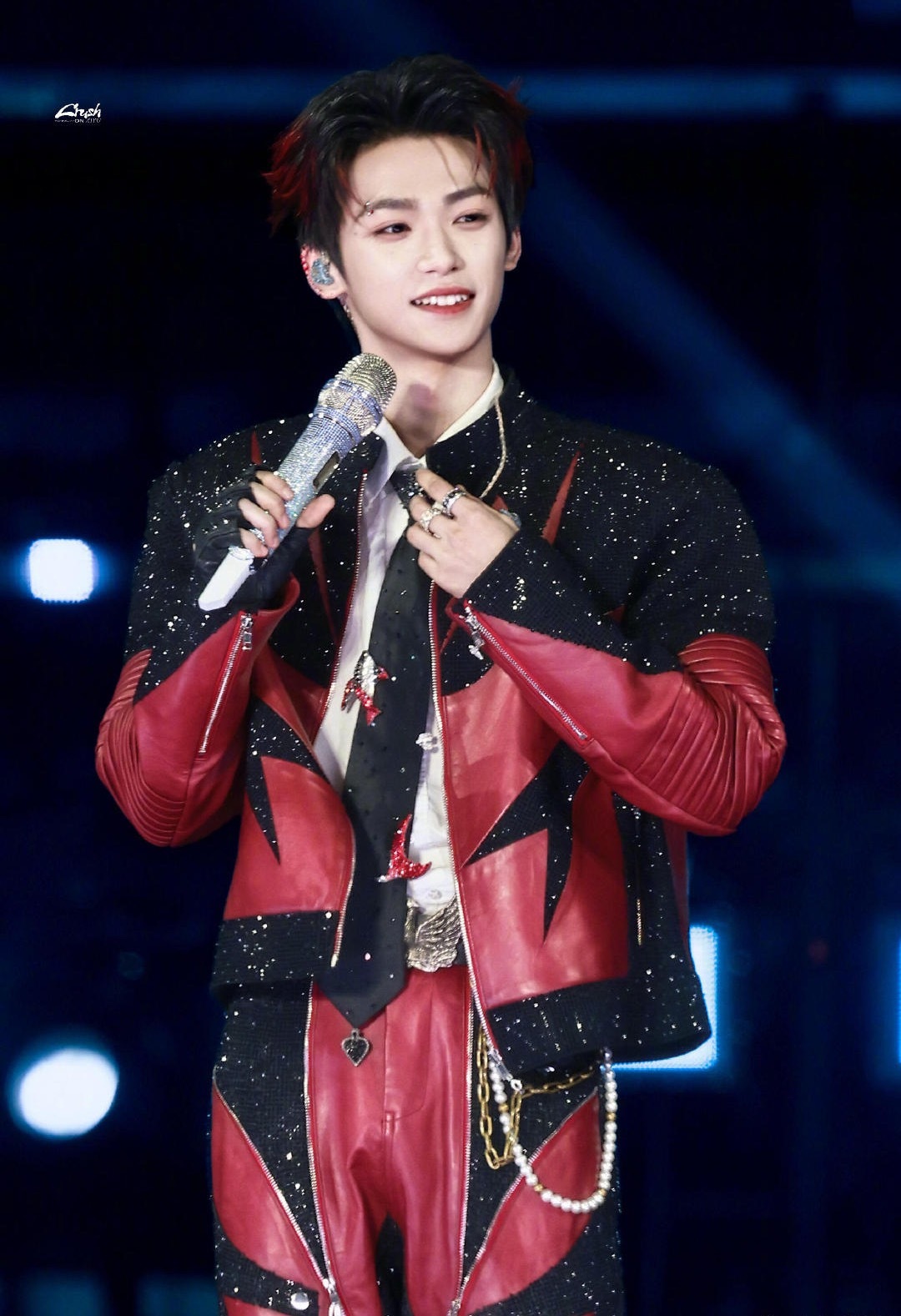 梓渝|赣州银河左岸音乐节饭拍出图,黑红拼接钻饰皮夹克搭配挑染红发,更有酷炫眉钉点缀,好一个摇滚少年🎸