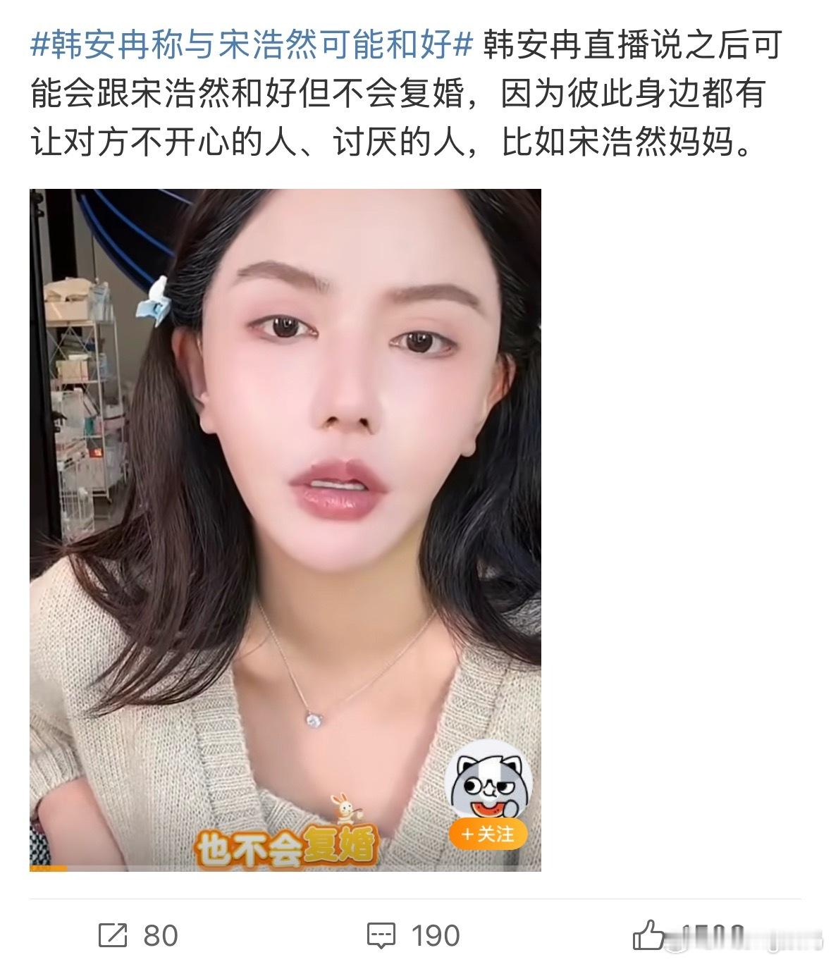 韩安冉称与宋浩然可能和好