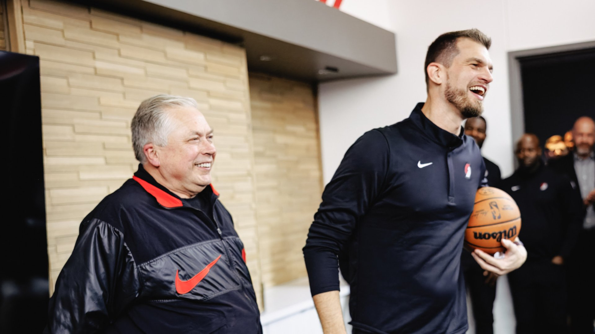开拓者赛后更衣室,全队给临时主帅斯普利特浇冰水,庆祝他执教开门红!