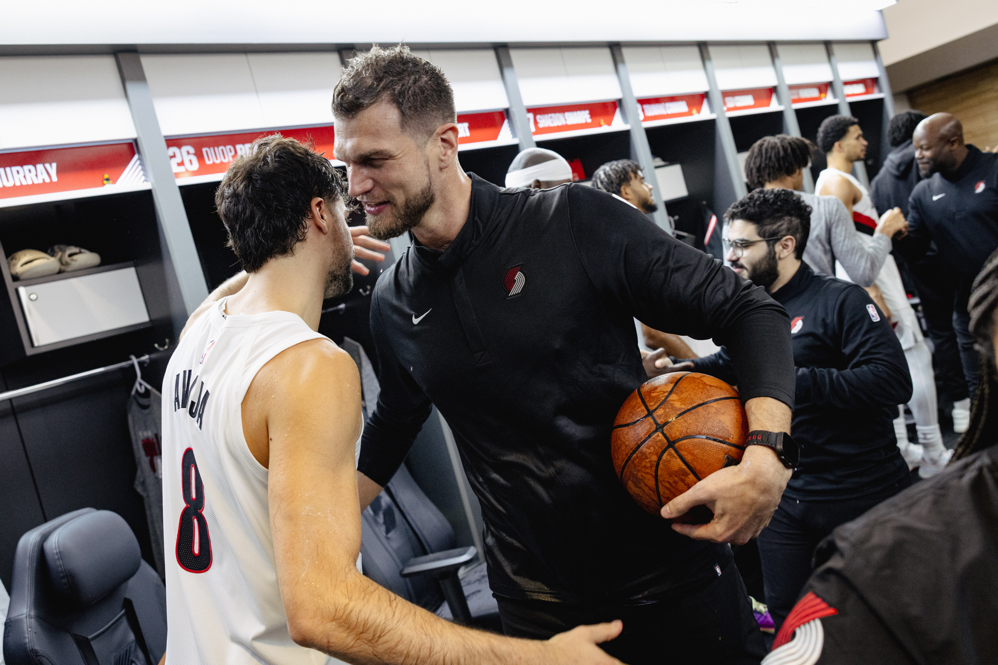杨瀚森2分2盖帽1篮板开拓者战胜勇士开拓者赛后更衣室,全队给临时主帅斯普利特浇