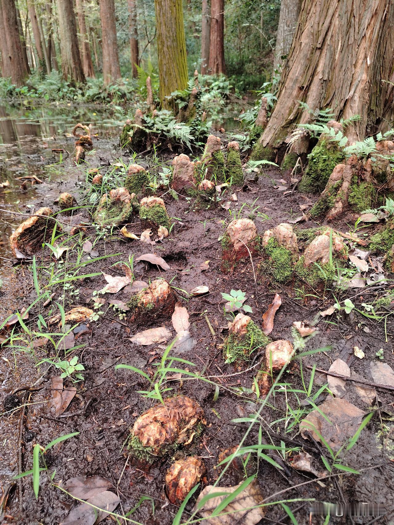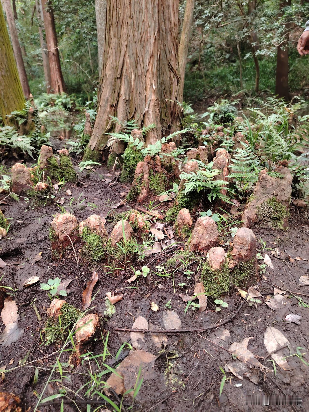 分享我这周有趣的事:前几天公司带我们去了一趟杭州虎跑泉,买票进园首先看见是溪水长流,长了很多笔直高大的水杉! 在一颗大树下,发现很多貌似蘑菇的东西,瞅了好半天,没认出来,同行的几个也不知道是啥,大伙儿给说道说道,有谁知道这是啥东西不?