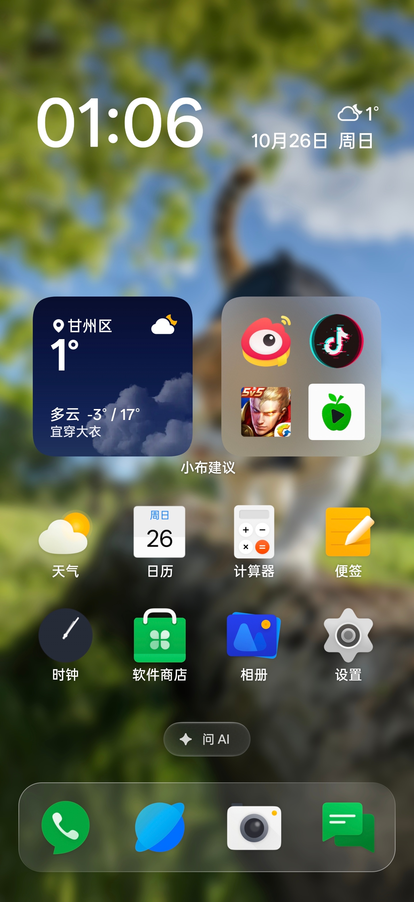 光影玻璃美学效果,支持雾影玻璃控制中心,桌面呼吸感常驻栏