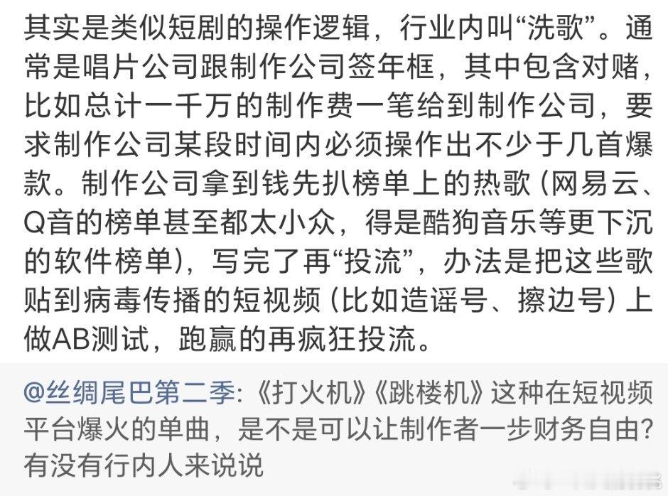 原来抖热歌都是这样推出来的,但是这种歌不能听整首特别难听,就某段当bgm可以,爆的快消失的也快 ​​​