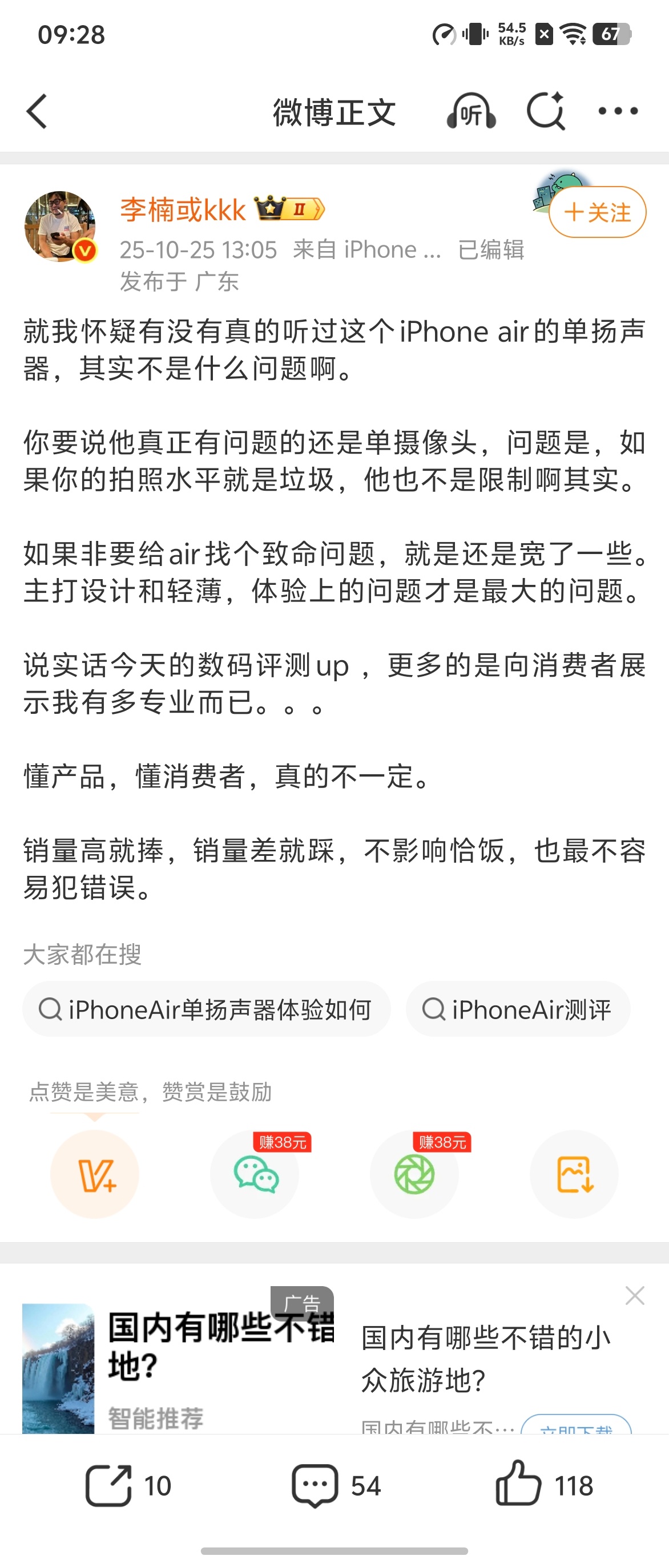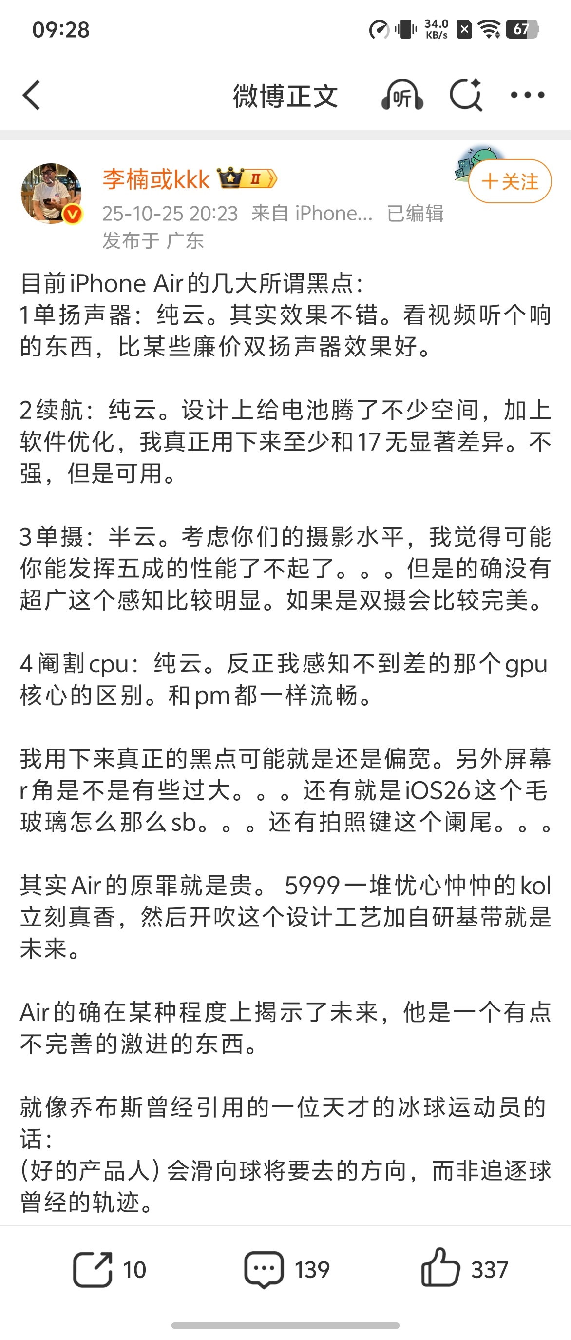 iPhone Air开售遇冷看完李楠关于iPhone AIR 的评价,你知道他为什么做不好魅族手机了?