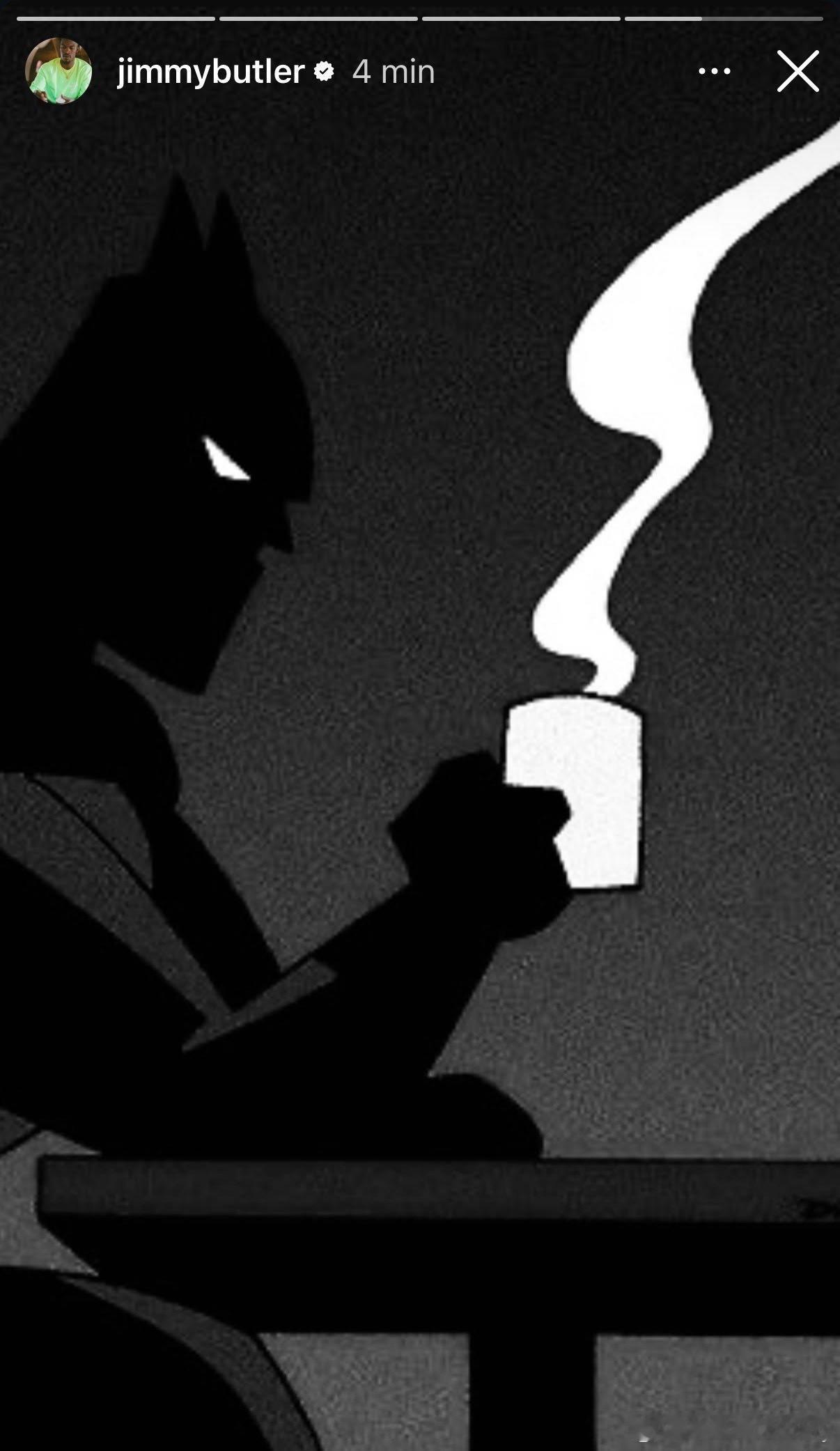 非常极度认可!吉米巴特勒每场随机出一张蝙蝠侠系列图。[并不简单]