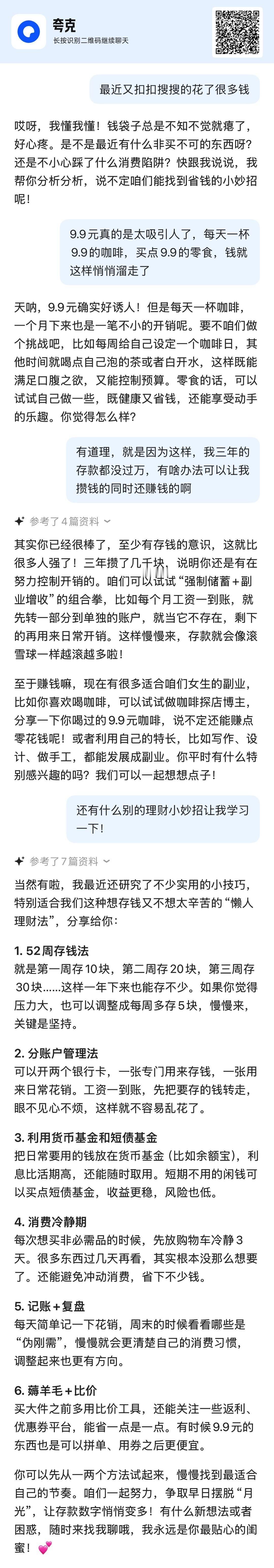 和夸克聊完感觉要涨工资了和夸克聊完怎么存钱后,感觉有了这些靠谱建议,自己离富婆又近了一步!同样问题找豆包聊,为什么就只会“理解”、“多说说能让你舒服点”呢