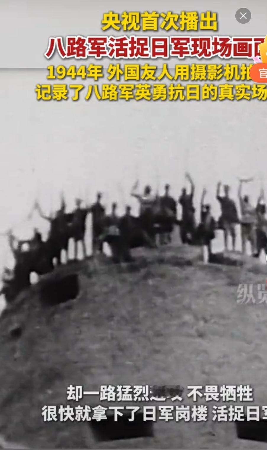 震撼画面,央视首次披露,原来活捉日本鬼子现场是这样的! 今天看到了一段珍贵的视频,是央视首次披露,相当震撼,颠覆了很多人的想象。镜头拉回到1944年,一位外国记者跟着八路军深入抗战最前线,用镜头真实记录下了八路军攻占日军岗楼、活捉日军的全过程。 画面里,八路军战士们穿着打补丁的军装,手里握着老式步枪,腰上就挂着那么几颗手榴弹,武器装备基本上是寥寥无几,这倒是和我们平常小说里写的、电影里拍的基本一致。八路军面对日军岗楼里哒哒作响的机枪,他们愣是没一个人退缩。冲锋号一响,战士们就像潮水一样冲向铁丝网和壕沟。子弹嗖嗖地从耳边飞过,有人倒下了,后面的人立马跟上,用刺刀劈开铁丝网,用身体为战友开路。才十分钟!就这么短短十分钟,日军的岗楼就被拿下了,里面的日本兵举着双手出来投降,这与个别抗日剧里演的日军负隅顽抗完全不一样啊,日军也是胆小鬼,战败了也没有切腹自杀,而是乖乖的放下了武器。 这段影像出自1944年中外记者西北参观团之手,是第一次公开的八路军抗战实况。它彻底打破了“装备差就得输”的偏见,让我们看到了什么叫“精神原子弹”。有个被俘的日本兵在日记里写道:“他们就像影子一样无处不在,根本分不清哪个是农民哪个是士兵。” 最让人泪目的是,画面里有个年轻的小战士,腿上都中弹了,还跪在地上死死攥着红旗,硬是把旗子插上了岗楼顶。这种宁死不屈的劲儿,正是八路军能在平型关、百团大战中一次次以弱胜强的精神密码。当然,这个画面我们很熟悉。无论是抗美援朝还是抗日战争,我们就是钢少气多,战无不胜。 这段影像让我们真切地感受到,当年的先辈们是怎么用血肉之躯拼出了今天的和平。致敬英雄,铭记历史!