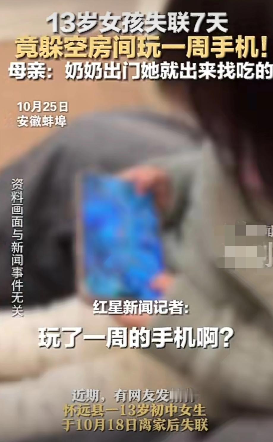 家长疯找一周的失联女孩,最后居然是躲在自己房间里玩手机,饿了啃零食、困了眯一会儿