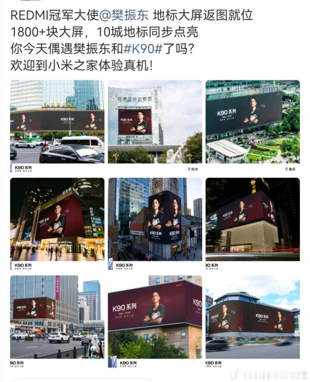 红米投放樊振东1800+块大屏,10城地标同步点亮,大家可以打卡啦