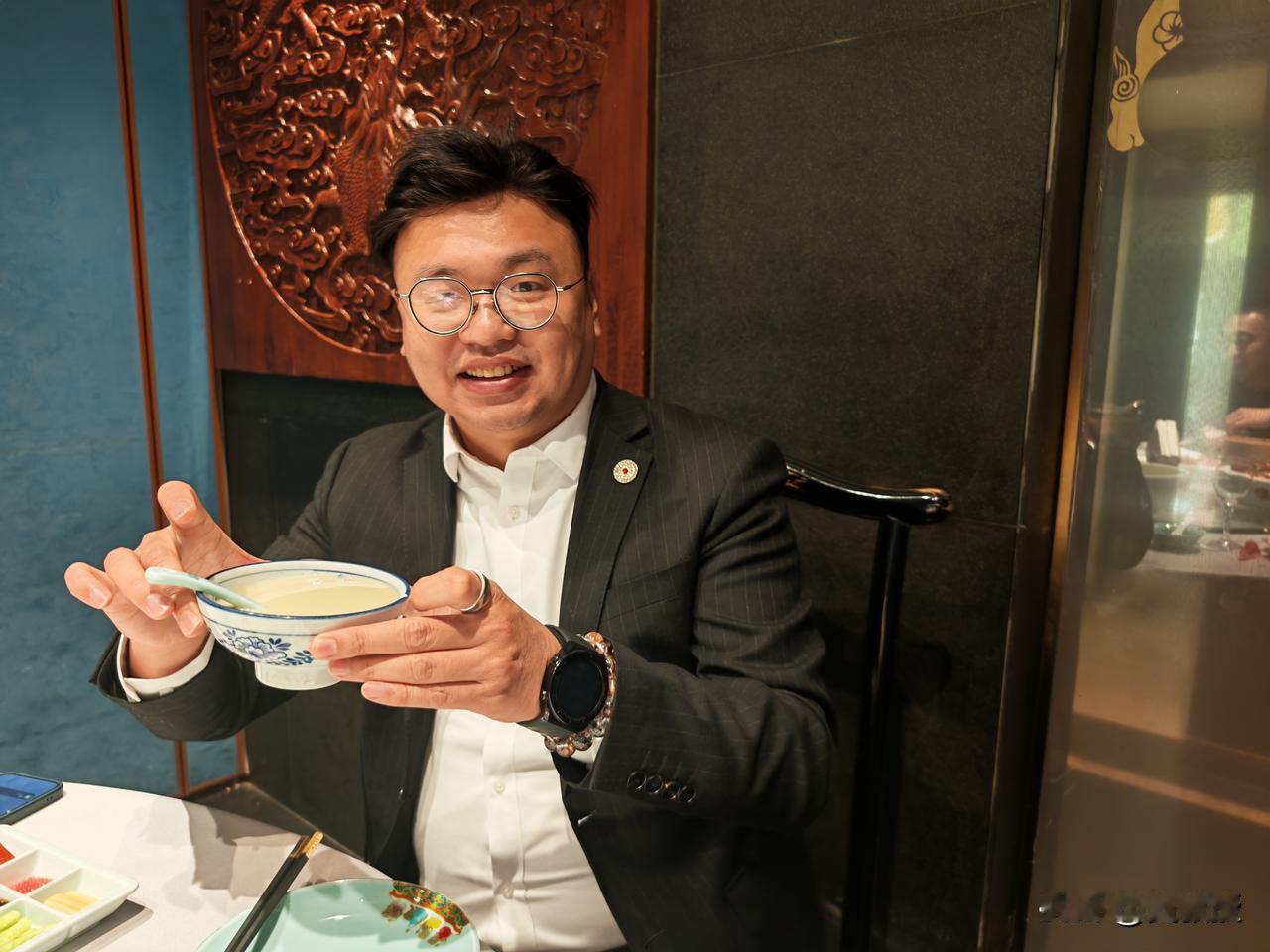 纪念台湾光复80周年 邀请两位大咖聚聚 酒是不给他们准备了,每人一碗豆汁 老范是台湾同胞,今天把豆汁喝完了 和馆长一个待遇 我最爱喝豆汁了 不知道,你们爱不爱喝 配上焦圈,咸菜,一口喝了 那叫一个地道,这你受得了吗? 另外一位,是微博网络大V 有认识的吗?