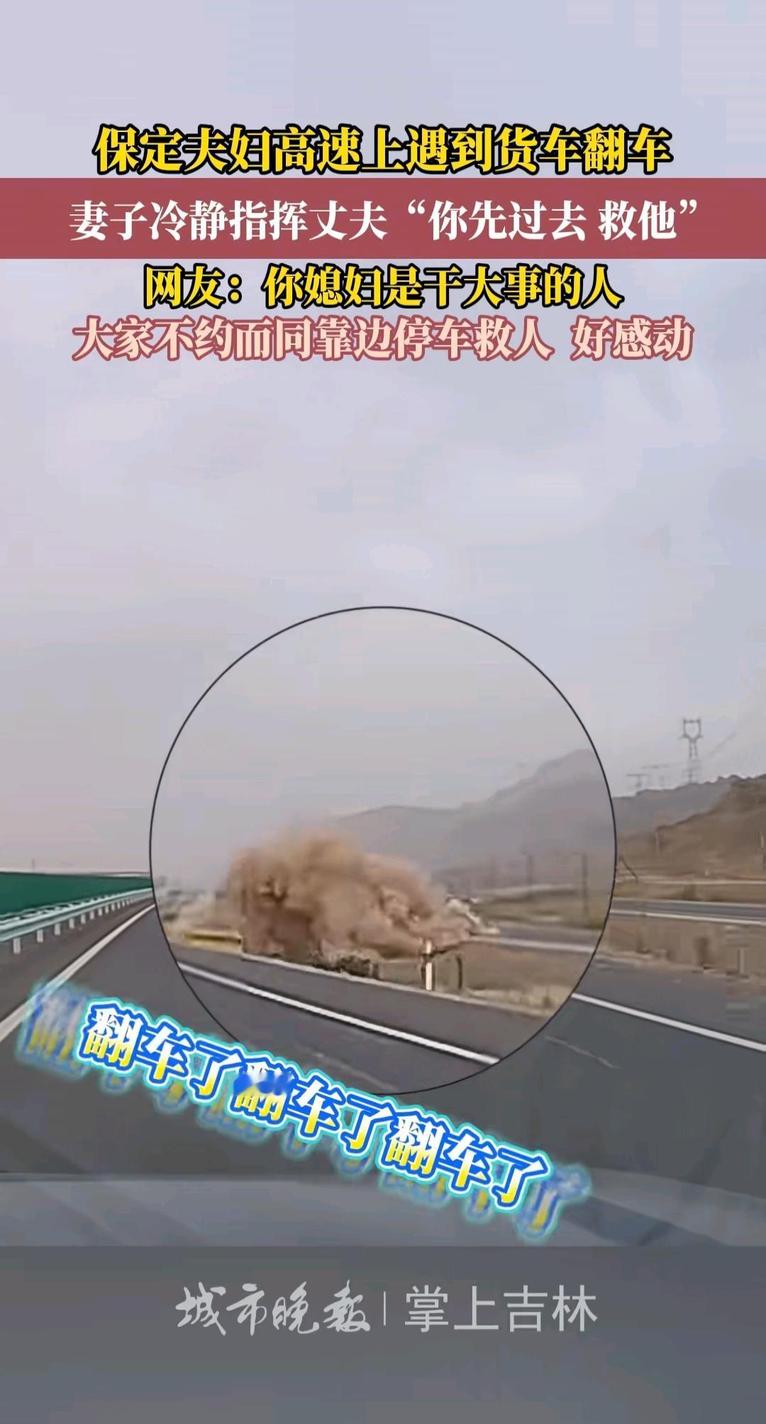 危险瞬间,她的一句话让丈夫躲过一劫,也为陌生人打开生路。 高速路上货车突然翻车 换谁都得慌神乱了阵脚 可这保定媳妇不一般 先让丈夫避开危险 再指挥救人 没只顾着自家安全 没犹豫该不该伸手 一句冷静指令 既护了家人 又救了别人 更难得的是 其他车主也跟着靠边停车 没人当看客 都撸起袖子帮忙 这场景比电视剧还暖 现在总有人说“事不关己高高挂起” 可真遇到事 还是有大把人愿意伸手 不是人心冷了 是善良从不缺土壤 她不是什么大人物 却在关键时刻显了大格局 比那些只会喊口号的人强百倍 行动永远比语言有力量 到底是本能反应 还是骨子里的善良 你们说 要是人人都有这份冷静和热心 路上的危险会不会少很多大货车救人