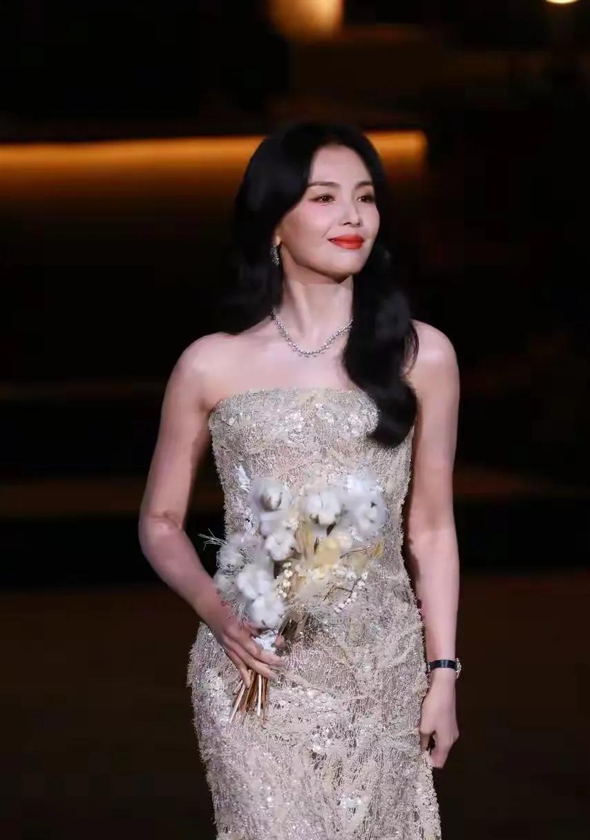 刘涛亮相2025 VOGUE盛典,一袭亮钻抹胸裙美成全场焦点 刘涛在2025 VOGUE盛典上的造型太绝了!一袭香槟色亮钻抹胸长裙,精致的剪裁勾勒出完美曲线,手持花束优雅又迷人。搭配闪耀的珠宝和复古波浪卷发,红唇浅笑间尽显成熟女性的魅力,妥妥的红毯高光时刻!