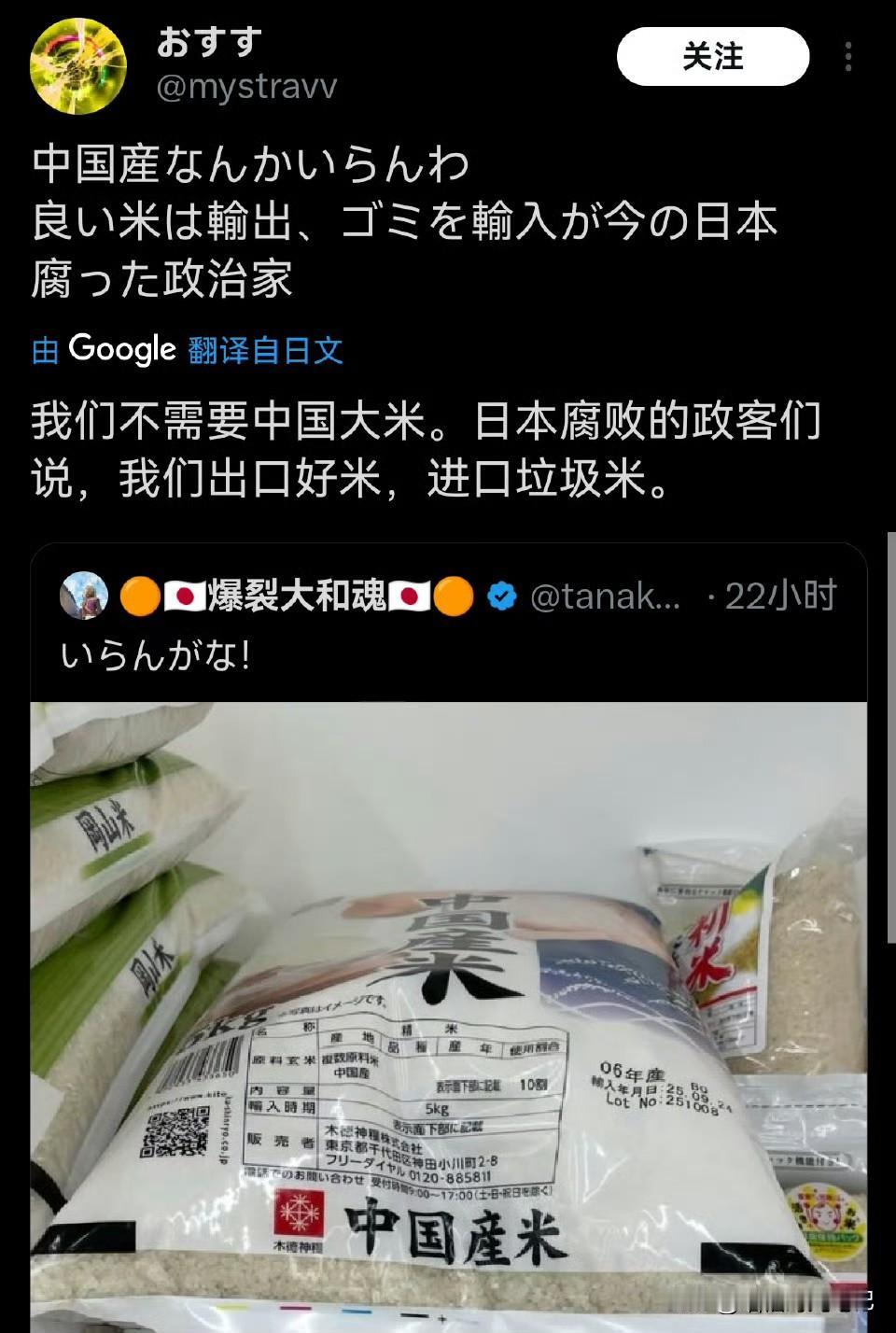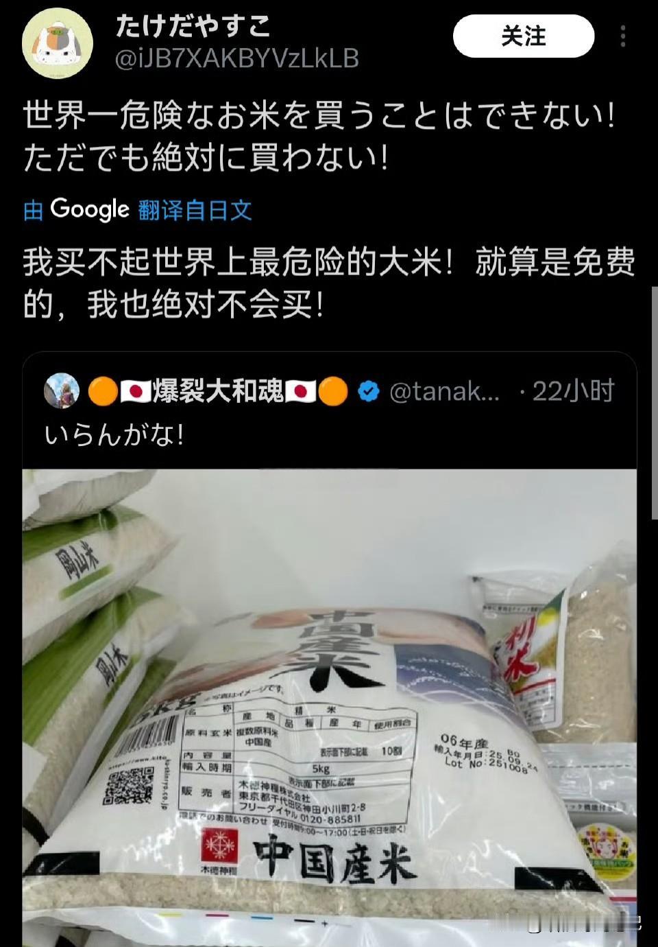 “日本国产米天下第一”这句话,日本人喊了半个世纪。可就在上周,东京大田区的业务超市把“中国产大米”摆在最显眼的位置:200日元/公斤,同货架的日本新米标价1050日元,价差五倍,视觉冲击堪比iPhone卖成红米价。 推特话题日本人因超市卖中国大米破防瞬间飙到热搜第一,评论区高赞:“宁可饿死也不吃!”然而打脸来得飞快,卖场工作人员说:“中国米补货三次,国产米下午还在。” 更扎心的是,农业记者曝出“潜规则”:所谓“国产”早就不是纯的,精米厂把中国米跟国产10:1混合,贴上“国内精米”就能合法上市,消费者吃了十年浑然不觉。现在超市干脆撕掉遮羞布,直接写“中国产”,大家才第一次认真看标签。 有人喊“辱日”,有人喊“真香”。一位主妇在镜头前直言:“丈夫说丢脸,我偷买了三袋,回家混进电饭煲,他边吃边夸今天米香。”农林水产省慌忙出台“标签字体令”,要求产地字样放大1.5倍,被吐槽“字体大就能改变口味吗”? 其实,日本农户心里门儿清:人工成本、土地租金、环保法规层层加码,国产米注定高价;中国东北米规模化种植,海运直达,到岸价连国产一半都不到。超市是生意场,毕竟谁跟钱过不去? 于是出现魔幻场景:网上骂声震天,线下悄悄抢购;货架前一边举手机抗议,一边把最后一袋中国米塞进购物车。 网友总结:嘴可以硬,钱包永远诚实。下次再遇到有人吹“日本米天下第一”,直接回他:“兄弟,你嘴里那口很可能也是中国米。” 今日所见所闻 日本人因超市卖中国大米而破防