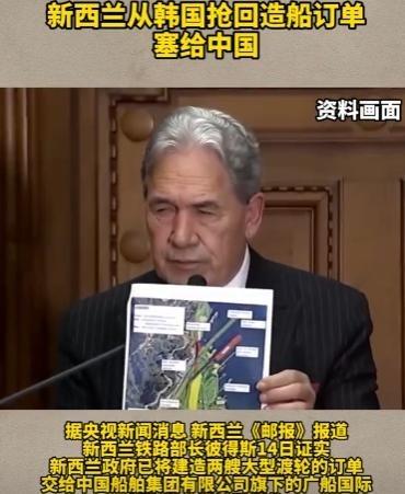 就这点实力,还敢跟中国抢订单?10月17日媒体报道,新西兰官方已经从韩国手里把造船订单给抢回来了,原因也很简单——整个造船的过程,都要比韩国现代旗下造船厂要便宜,并且他们的官员甚至还公开表示:我们要为纳税人节省数十亿元! 新西兰的渡轮项目本来是为替换老旧船队,连接南北岛的库克海峡航线。 2021年,新西兰KiwiRail公司跟韩国HD Hyundai Mipo船厂签了合同,打算建两艘巨型渡轮,每艘长220米,能载1900人,还带铁路轨道,方便火车直接上船。 起初预算5.51亿新西兰元,看起来挺靠谱,韩国船厂也凭着多年积累,在全球市场占一席之地。那时韩国在高端船舶如LNG运输船上特别强,全球订单不少都流向他们,因为技术门槛高,建造周期稳。 可项目推进没多久,港口基础设施得大改,包括惠灵顿和皮克顿的码头加固、泊位扩展,这些额外开支把总成本推到30亿新西兰元。 KiwiRail报告显示,船厂报价涨了,材料和劳动力费用水涨船高,加上全球供应链波动,延期风险也大。新西兰政府一看,这笔账不对劲,纳税人钱不能这么花。 2023年12月,联合政府上台没多久,就果断取消合同。铁路部长温斯顿·彼得斯公开表态,说这能帮民众省下大笔钱,避免财政黑洞。 结算时,新西兰付了1.44亿新西兰元给韩国船厂,作为补偿,加上之前投入,总损失约2.22亿新西兰元。但比起继续砸30亿,这步棋算值。 新西兰有底气这么干的核心是全球造船格局变了。过去十年,韩国船厂如HD Hyundai靠着高效管理和政府补贴,在市场份额上领先。2020年左右,韩国占全球订单30%以上,尤其在高附加值船舶上。但从2023年起,中国船企强势崛起。 中国船厂不光量大,还在质量和成本上优化。 比如大型集装箱船,中国建造的船载货能力强,燃油效率高,符合国际环保标准。中国船舶集团旗下企业,如广州船厂国际,积累了批量生产经验,周期短,价格实惠。 韩国订单下滑明显。2024年全球船市订单总量降了,但韩国市场份额从30%掉到29.24%,中国稳在46.59%。韩国船企面临劳动力短缺、原材料涨价问题,加上中美贸易摩擦影响,美国订单转向本土或盟友。 韩国政府虽推补贴,但没法跟中国规模比。中国有完整产业链,从钢材到电子设备,自给率高,成本控制好。 新西兰取消韩国合同后,2024年他们调整方案,不再追求巨型船,转向更实用型号。政府成立Ferry Holdings公司,负责采购。 10月14日,彼得斯宣布选定中国广州船厂国际建两艘新渡轮,长200米,宽28米,能载1500人,有路轨双用甲板,预计2029年交付。 中国船厂报价低,技术成熟,还承诺固定价格,避免超支。相比韩国方案,新西兰预计总成本控制在合理范围,省下基础设施升级费。广州船厂隶属中国船舶集团,建过类似Ro-Pax渡轮,经验足,在国际招标中胜出。 这事反映出全球船市竞争白热化。中国船企靠创新和效率,稳坐头把交椅。2024年,中国船坞手持订单超2亿载重吨,远超韩国1.2亿。 日本虽有技术,但份额只剩10%。韩国船企如HD Hyundai,正调整策略,转向美国市场,建军舰和高端船,但民用订单流失严重。2025年预测,中国市场份额可能升到75%,因为绿色船舶需求大,中国在电动和氢燃料船上布局早。 不少国家转向中国船厂,像澳大利亚和欧洲一些订单,也从韩国转走。原因简单:性价比高。中国船企不光便宜,交付准时率高,2023年全球平均准时率80%,中国达85%。 韩国虽有品牌,但近年延期案子多,影响信誉。新西兰官员强调,这次合作纯经济考量,没政治意味。但从大局看,西方国家在供应链上更务实,不再一味排斥中国制造。