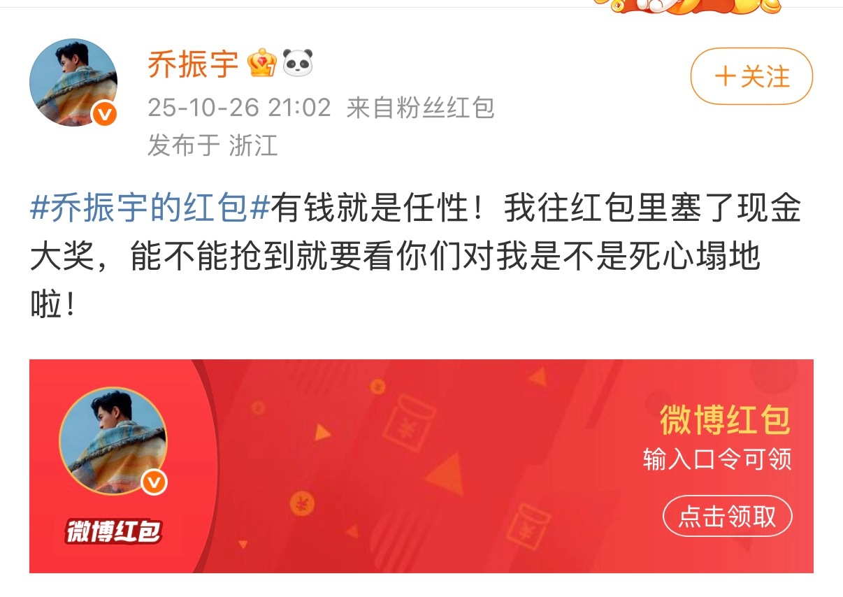 乔振宇发红包 热烈庆祝《暗河传》热度破万!乔振宇发红包的样子水灵灵的,对剧粉这么大方,喆叔的宠粉技能直接点满。这部剧不仅有紧凑的剧情,还有细腻的情感刻画,每一集都让人意犹未尽,热度破万实至名归,期待接下来的内容更精彩!