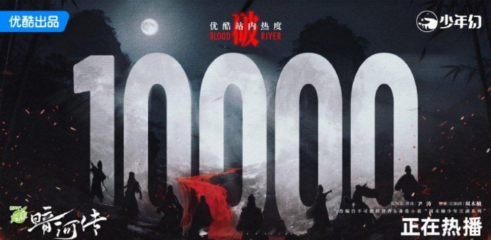 龚俊首部破万大男主剧暗河传热度破万!我们少歌宇宙终于有热度破万的剧了[泪]!恭喜暗河!希望《暗河传》越来越好,希望少歌宇宙越来越好,也希望投资人能多看看少歌系列,这是个很热血江湖的ip,真的很好看!希望《少年歌行之南明离火》项目快些启动吧!