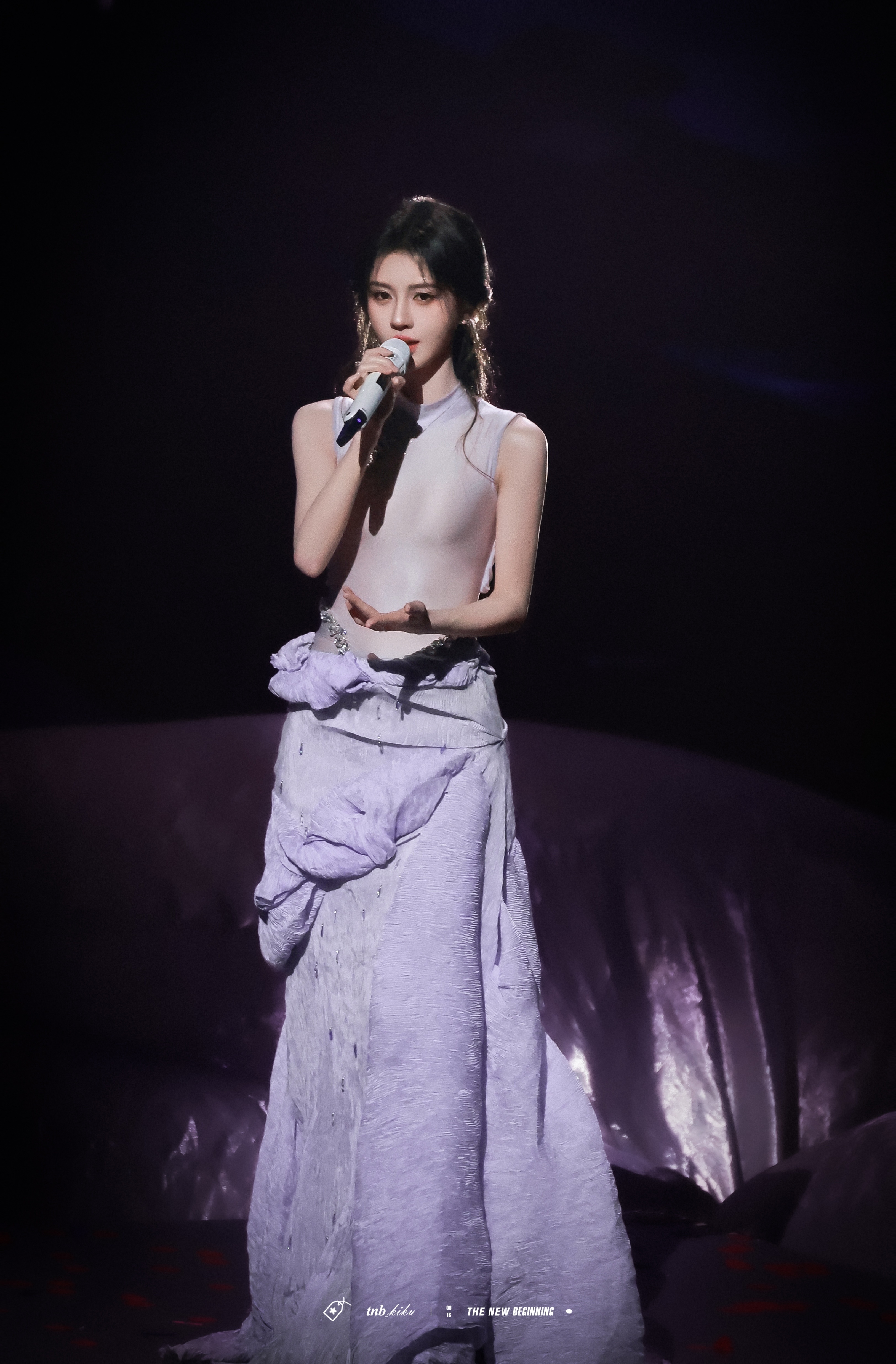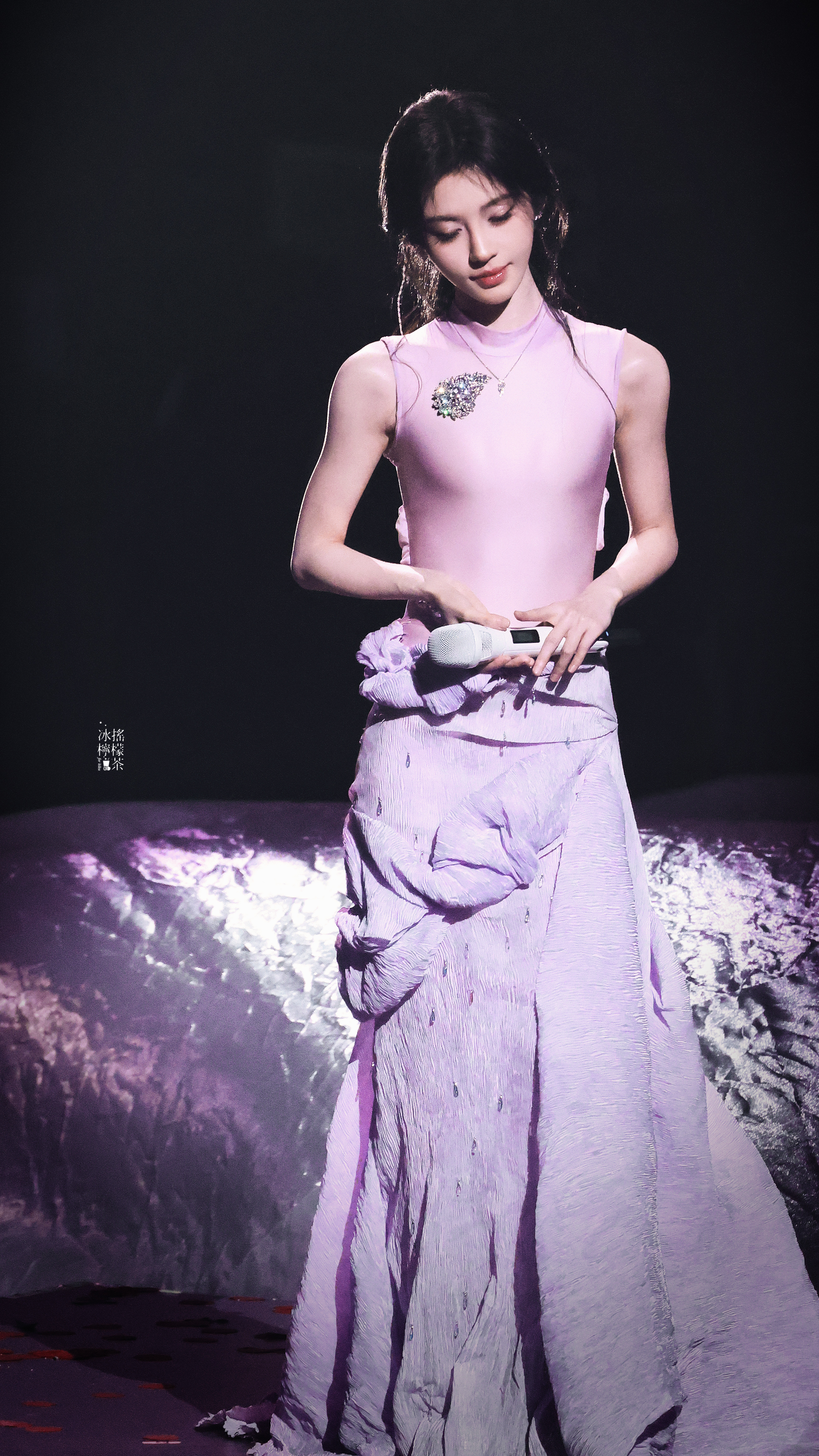鞠婧祎 紫裙曳地,清辉落肩,她在舞台中央把歌声酿成月光,每一个音符都裹着细碎的星光,漫过黑暗,落进耳畔的温柔里。鞠婧祎紫衣锦鲤抄舞台 鞠婧祎轻纱烁梦