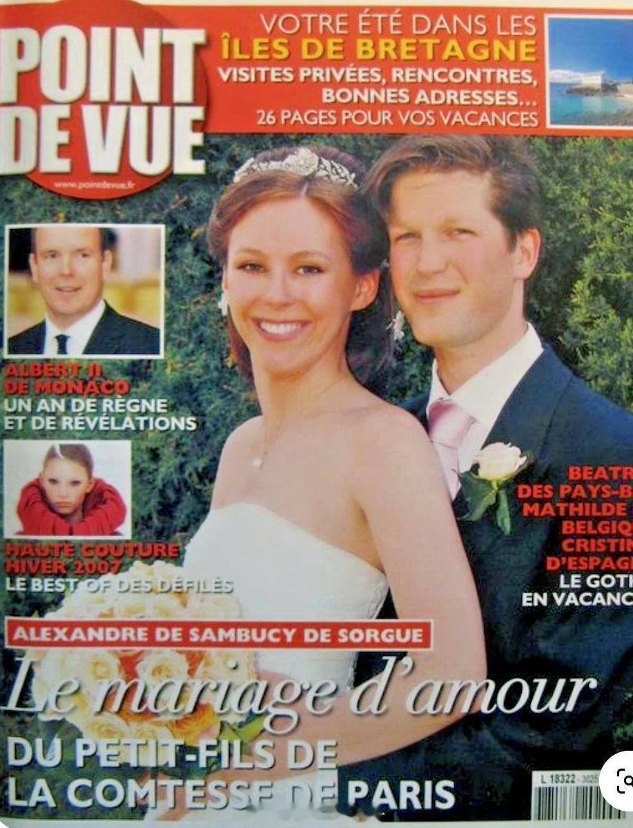 老照片 2006年,28岁的亚历山大·桑比西·索尔格男爵和27岁的路人甲安妮-塞西尔·贝尔托成婚。亚历山大亲妈是奥尔良公主山塔尔,他自己即巴黎伯爵老亨利的外孙