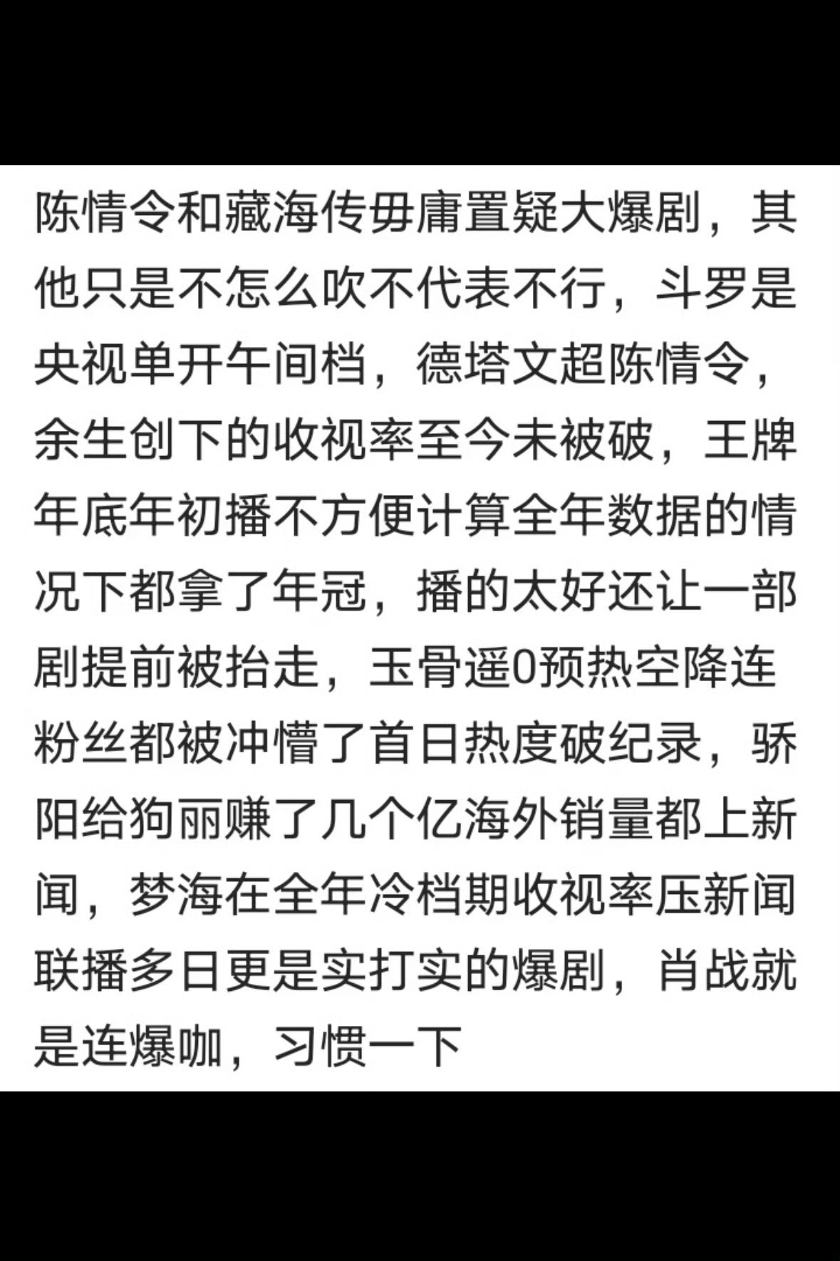 其实肖战的任何一部作品成绩拿到别人那里都足够爆出来一个大流量了,只是因为他实在站的太高了,每次都会被用需要拿出能碾压所有人包括自己之前的作品的要求审视着。不然就他这些作品的成绩,下限已经是很多人的上限了