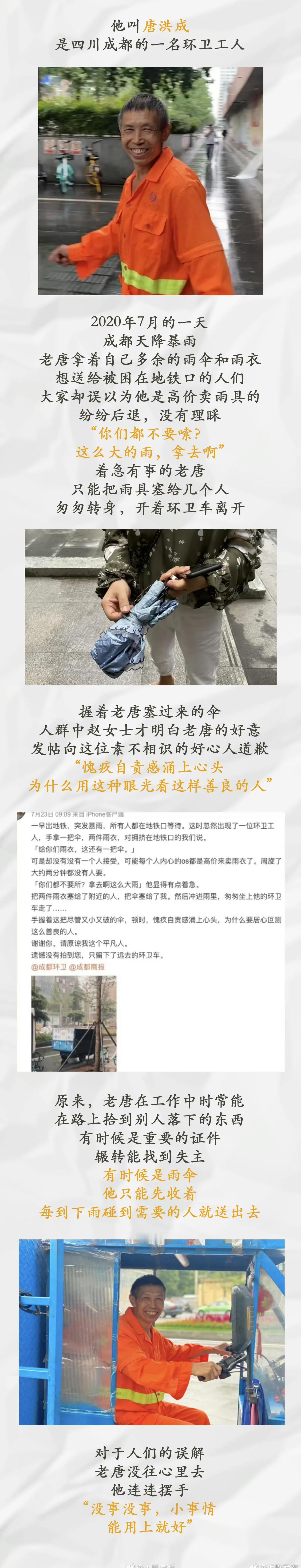 【今天听一听他们的故事】天还没亮,这些背影已悄然出现在清晨的街头;夜色渐浓,那抹熟悉的橘黄仍在路灯下默默忙碌。每一个平凡的背影,都有自己的故事。 他说:“这算啥拾金不昧?捡到当然要还给人家的” 她说:“宁愿一人脏,换来万家净” 今天,是多个省市确定的环卫工人节,向他们送出祝福和问候,也要多一些尊重和关心↓↓