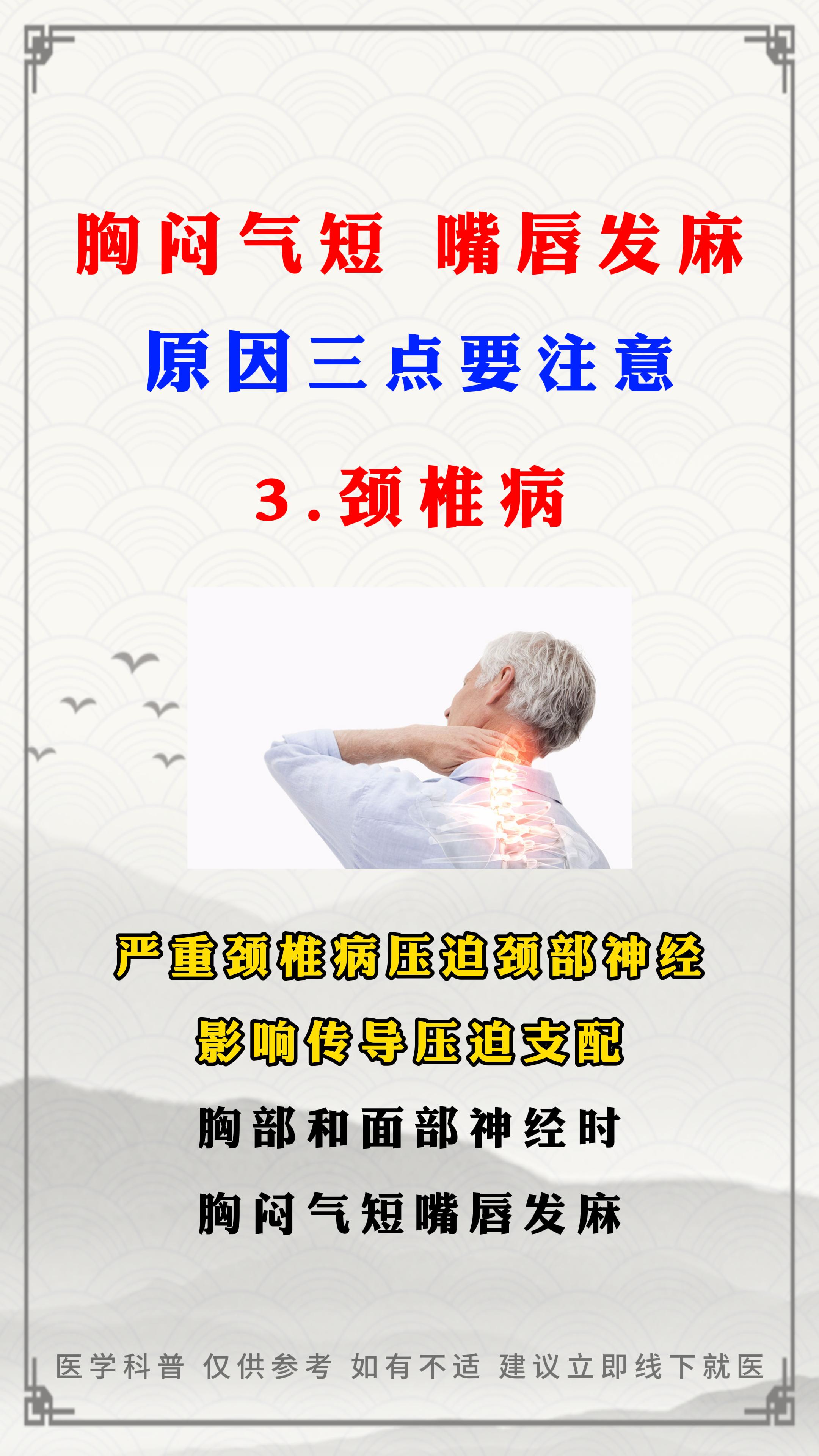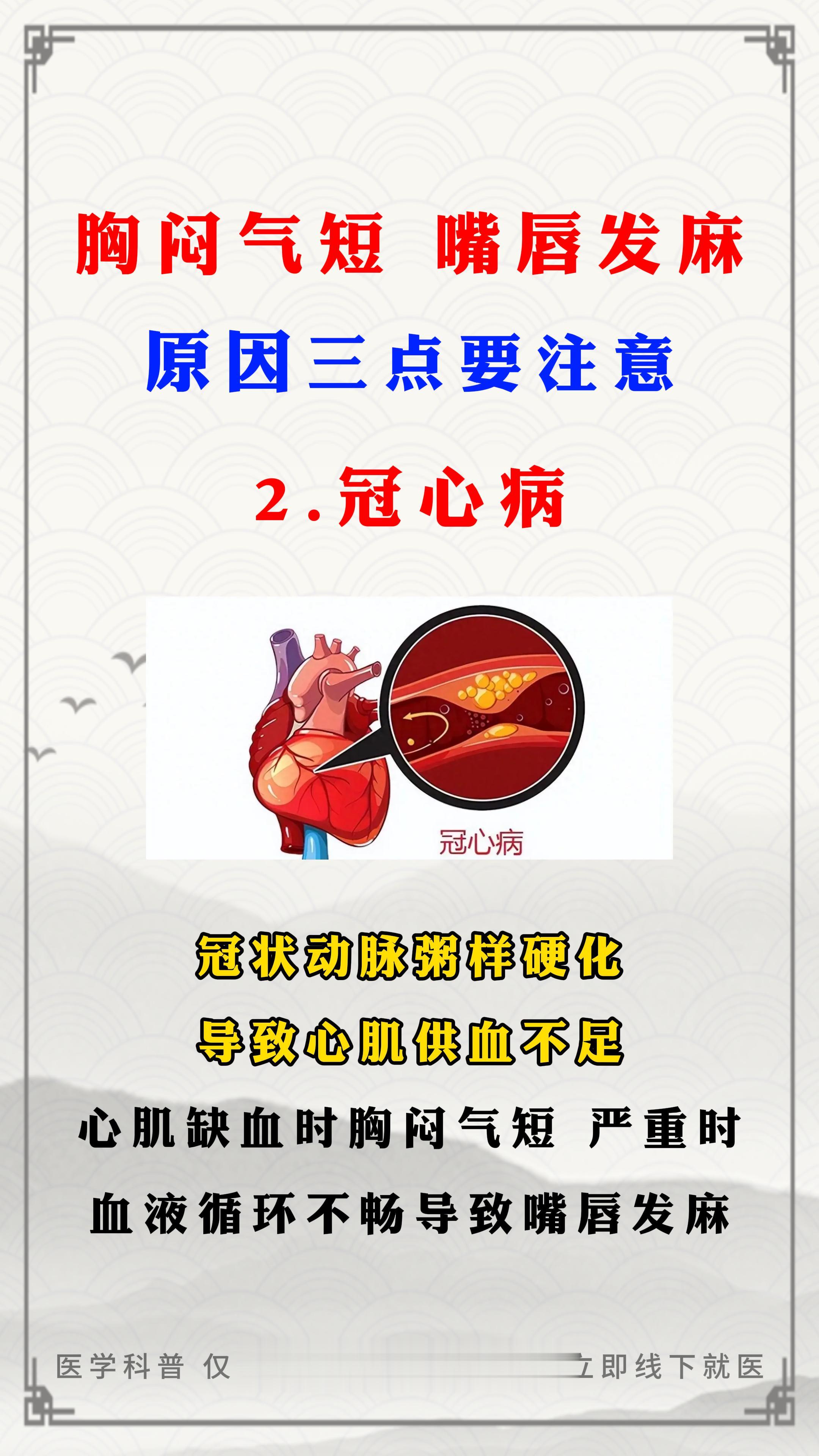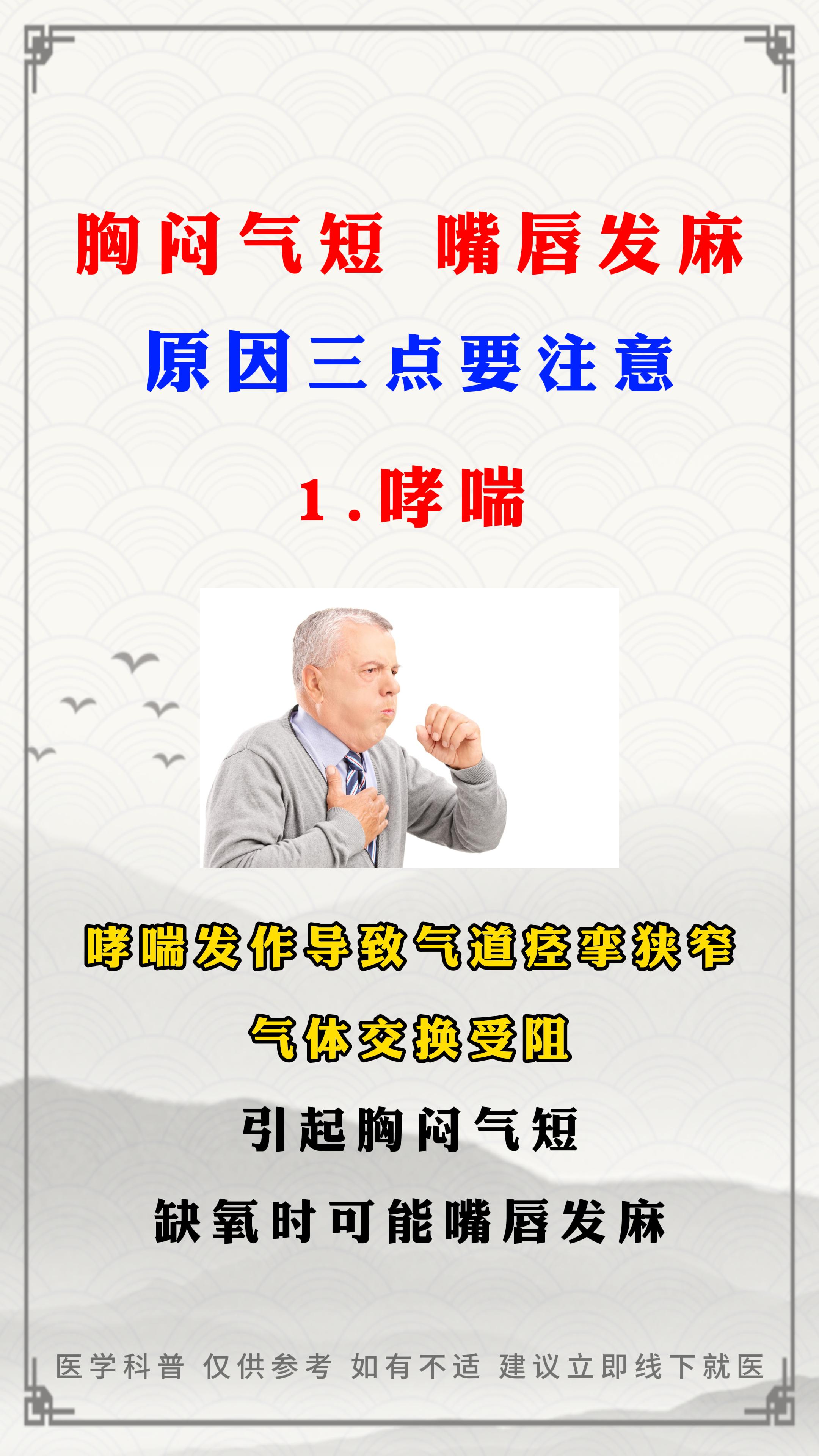 胸闷气短,嘴唇发麻,原因有三点要注意。