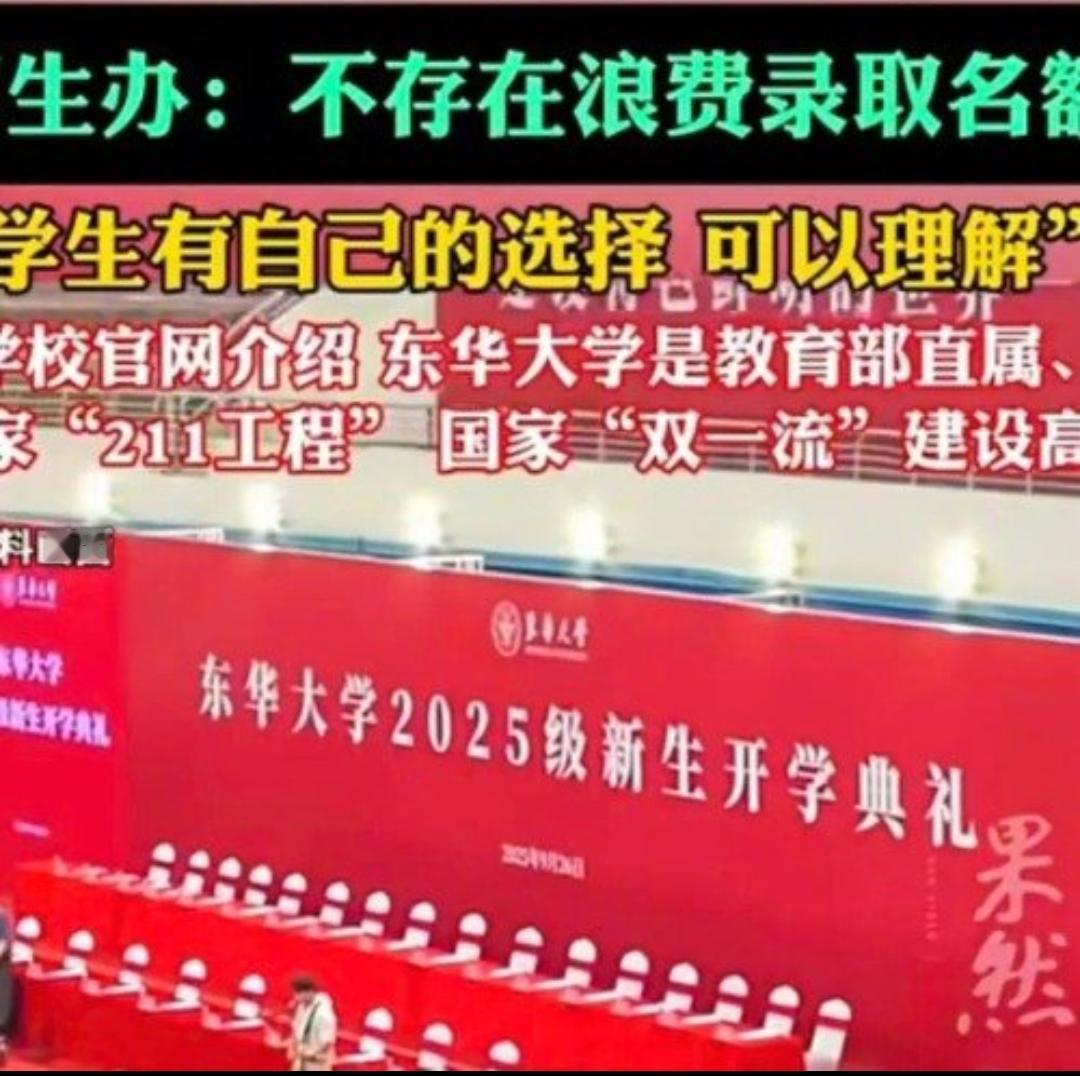 东华大学公布了43名2025级本科新生放弃入学资格的名单,这事儿在网上可引起了网友们的热烈讨论。有人觉得这些学生可太“任性”了,浪费了录取名额;但也有人说学生有选择的自由。 其实学生放弃入学这事儿挺常见的,每所学校每年都会碰到。东华大学招生办的工作人员说,这些学生放弃入学各有各的原因,有的打算复读,港澳台的学生想留在本地,还有十多个人是因为找到了满意的工作所以放弃入学。 我觉着吧,没必要公布学生的姓名。放弃入学本来就是学生的权利,现在高等教育越来越普及,这种情况以后肯定会更多。高校公布名单可能是出于信息公开之类的考虑,可把学生姓名详细披露出来,说不定会给学生带来不必要的压力。