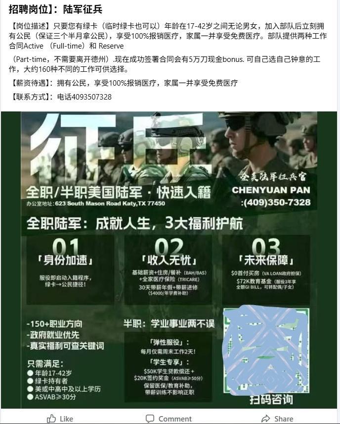 “预备役兼职,不需要离开德州”?这分明不是国民警卫队吗?啊还不如,美国陆军啥时候是这样服役了?还想拿一样的薪资和医疗待遇?做梦!