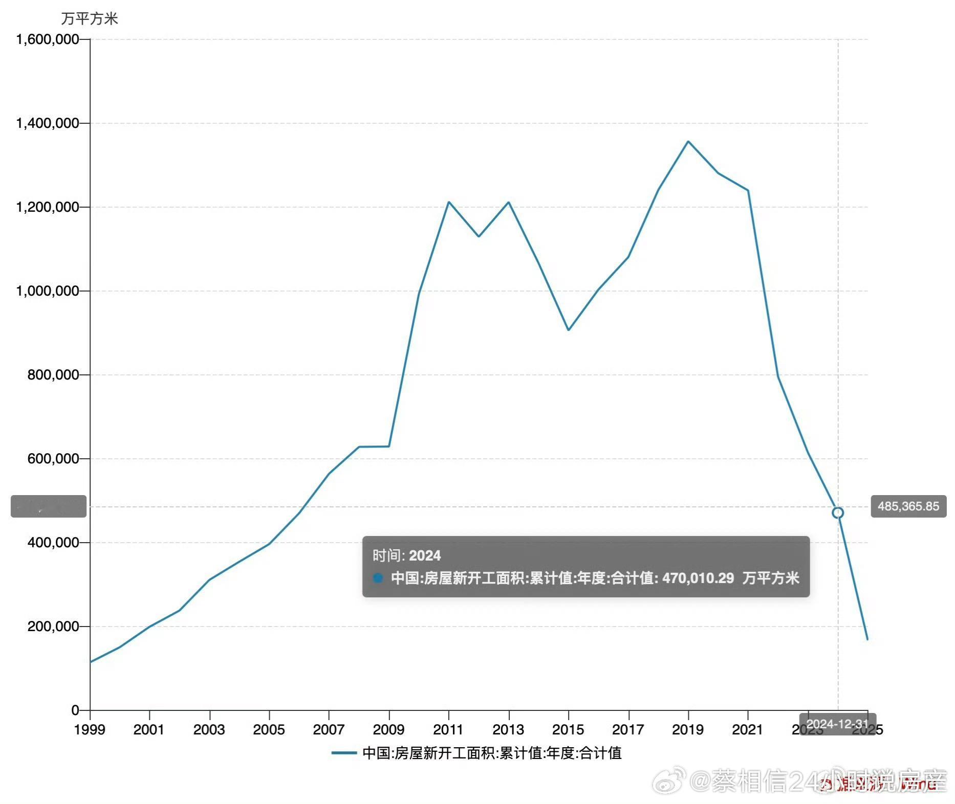 2024年,中国房屋新开工面积下降至2006年水平,预计2025年的新开工面积会和2002年或2003年差不多。