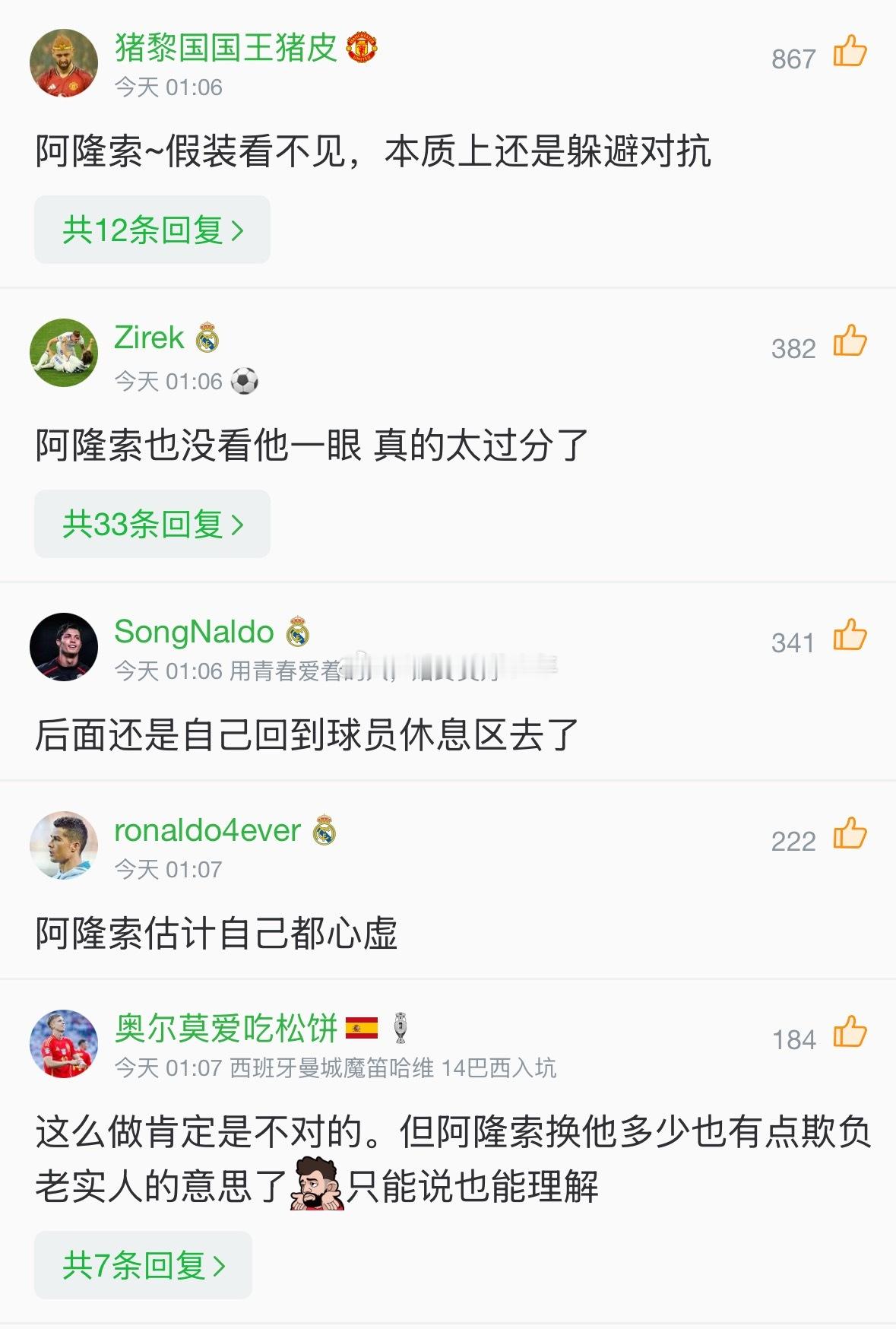 皇马2比1巴萨 维尼修斯被阿隆索换下的时候正是脚感很好很顺的时候,所以维尼修斯情绪就起来了一直在抱怨,一个名场面维尼修斯下来的时候假装没看到阿隆索,阿隆索也假装没看到维尼修斯,感觉这两个人矛盾是越来越大了。皇马vs巴萨