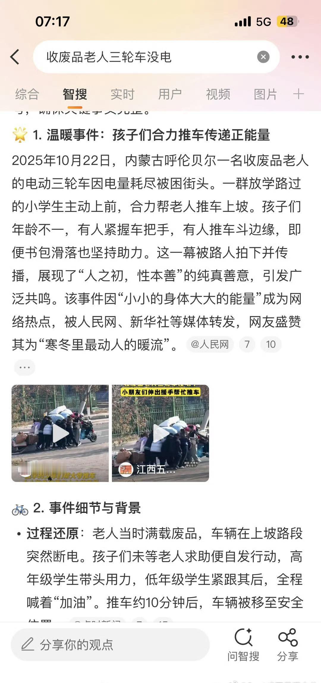 收废品老人的三轮车在路上突然没电了 小学生主动帮忙推车 还有几只喵星人汪星人也来“帮忙” 这不就是我们小时候作文里常写的“好人好事”吗 时间的温暖本该如此