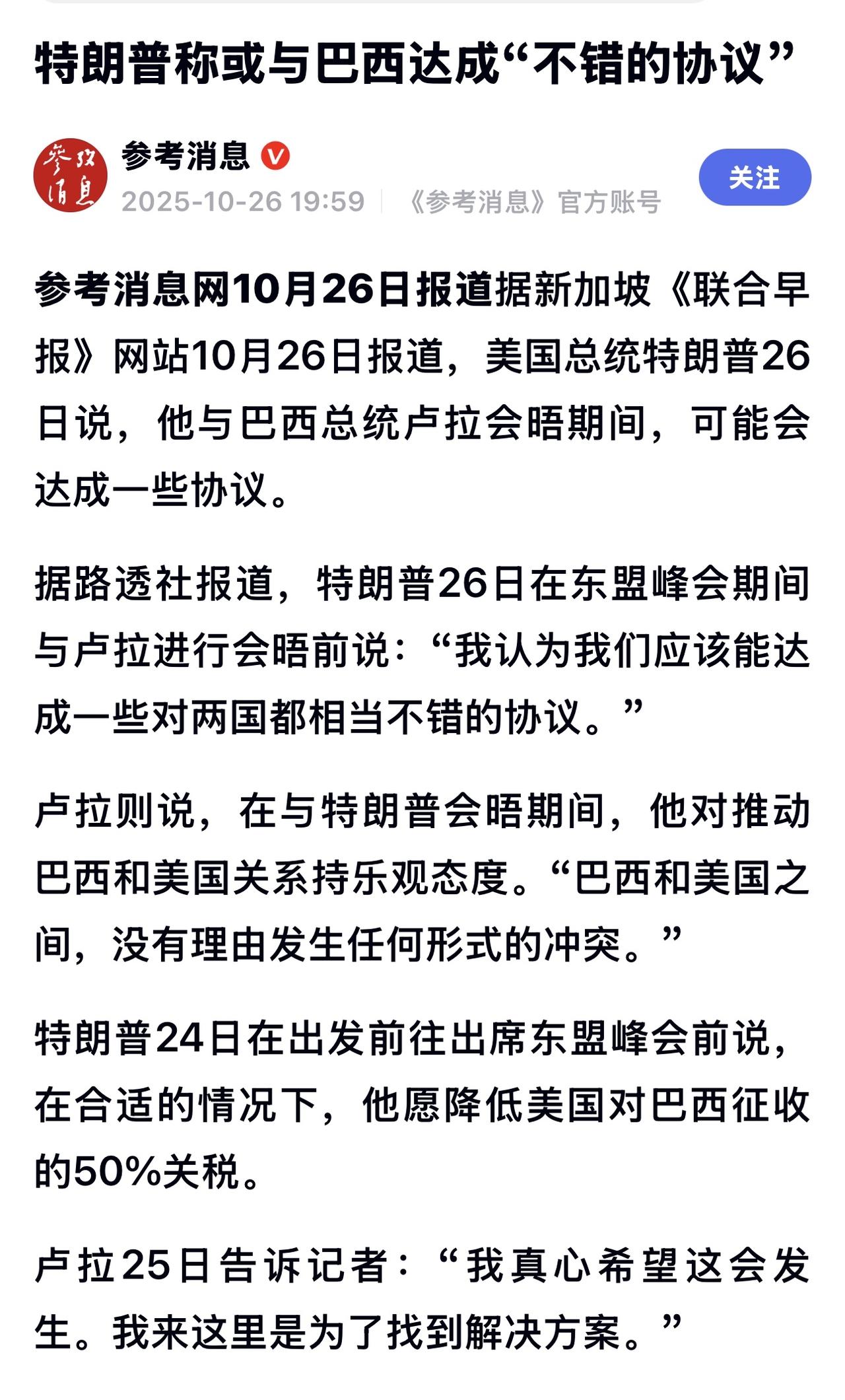 巴西将与美国就关税问题进行谈判