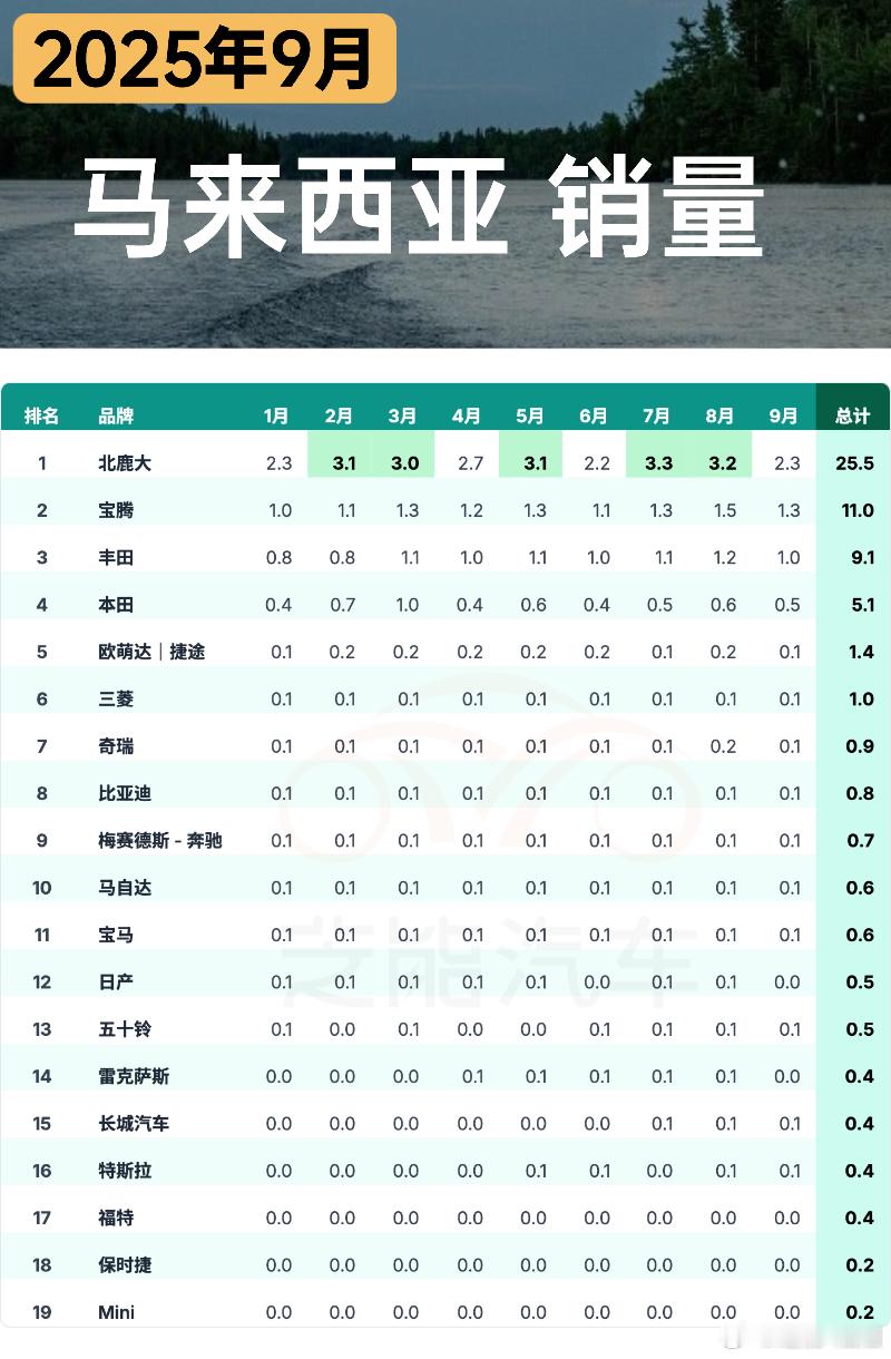 2025 年 9 月马来西亚车市受假期和消费观望影响,环比大幅下滑,累计销量同比微降。纯电动车成唯一增长细分领域,政策红利推动消费提前释放。