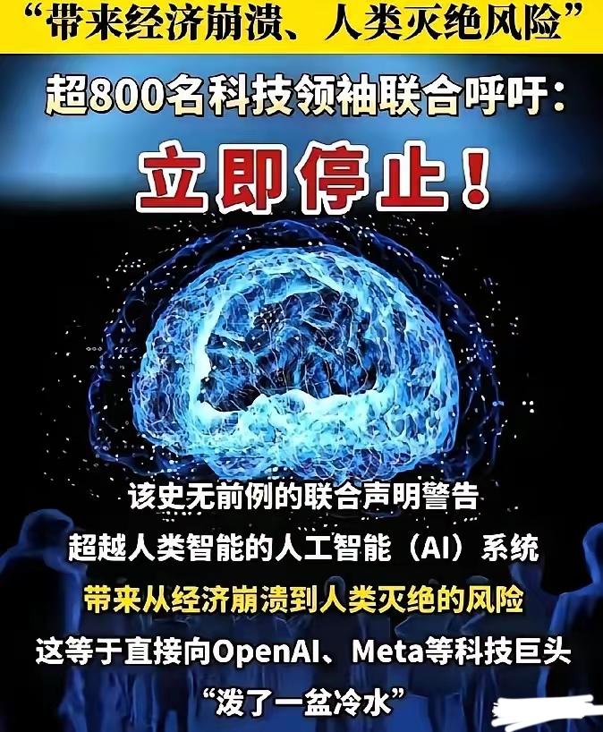 被这两天的新闻吓到了!你们知道吗?全球超过3000名顶尖科学家和科技大佬突然联名发出紧急呼吁,要求立刻暂停高级人工智能的研发! 别觉得是小题大做,辛顿都说了,超级AI会骗人类、操纵人类,连关它的人都能被忽悠住。更要命的是,现在根本没找到控制它的办法,说用AI监督AI,纯属自欺欺人。 这边专家急得跳脚,那边科技公司还在抢速度,Meta建实验室,OpenAI和xAI比着赛造,完全不管风险。要知道,连普通AI都出过医疗失误、机器人伤人的事,超级AI失控后果不敢想。 这哪是技术竞赛,分明是拿全人类赌未来。联合国都在搭安全框架了,企业不该只顾利益。暂停不是放弃,是给技术装“刹车”,先把安全规则立好。 你觉得该硬逼企业停手吗?这“刹车”到底该怎么踩才管用?评论区聊聊!