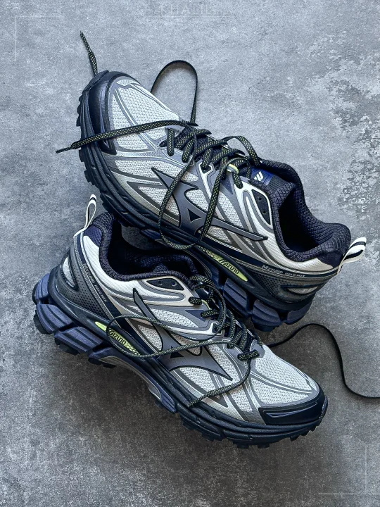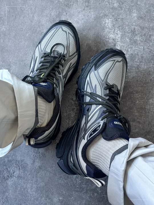 整体造型机能潮流:鞋面采用六边形蜂窝状织物+压胶线条,打造出丰富的层次;同时鞋底、足弓和后跟也是重点进行了设计、多样的材质、颜色、线条变化,很有科技感。鞋带是编制鞋带、好看也很特别。
