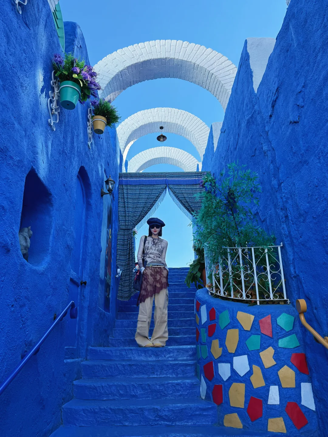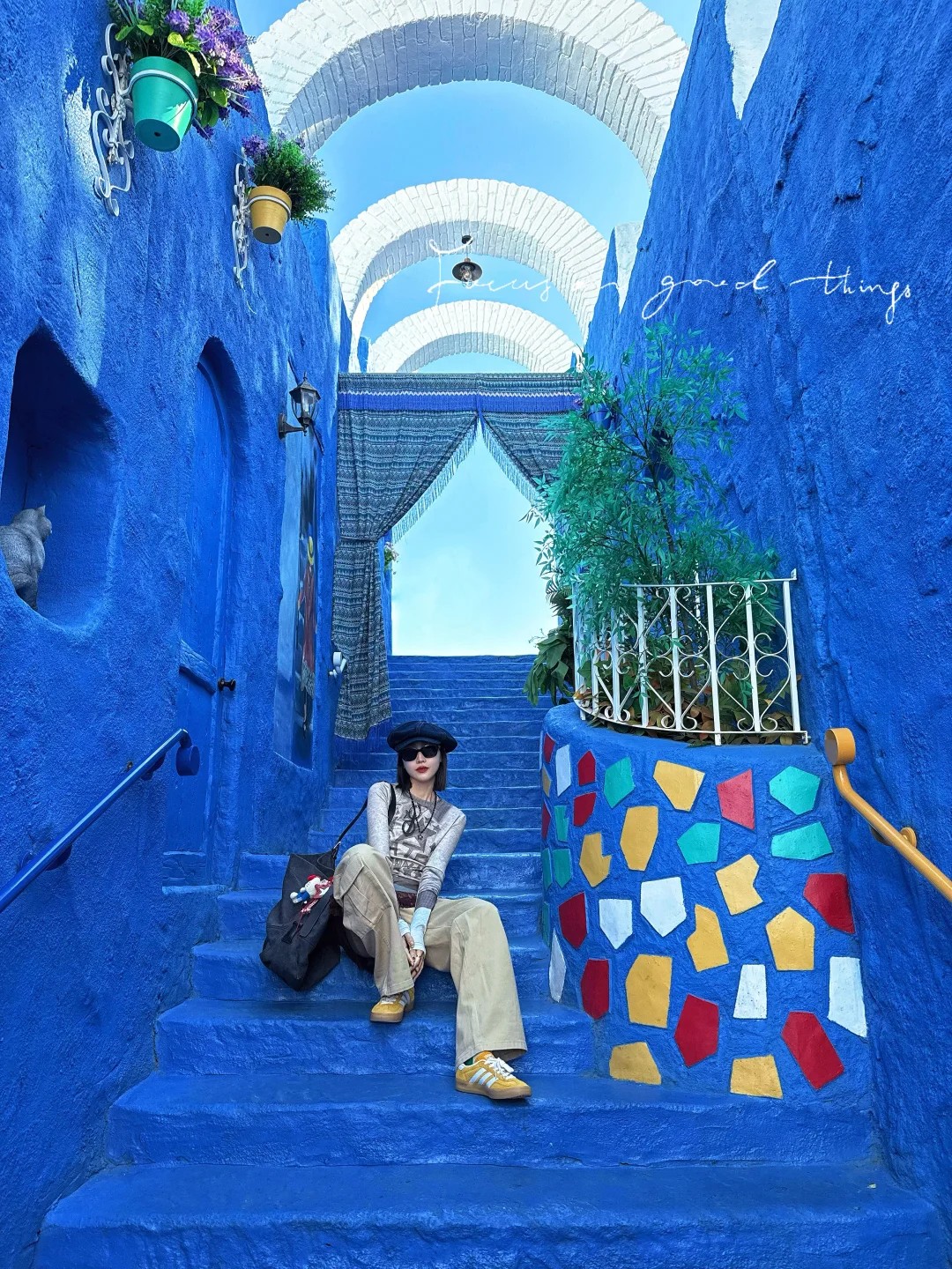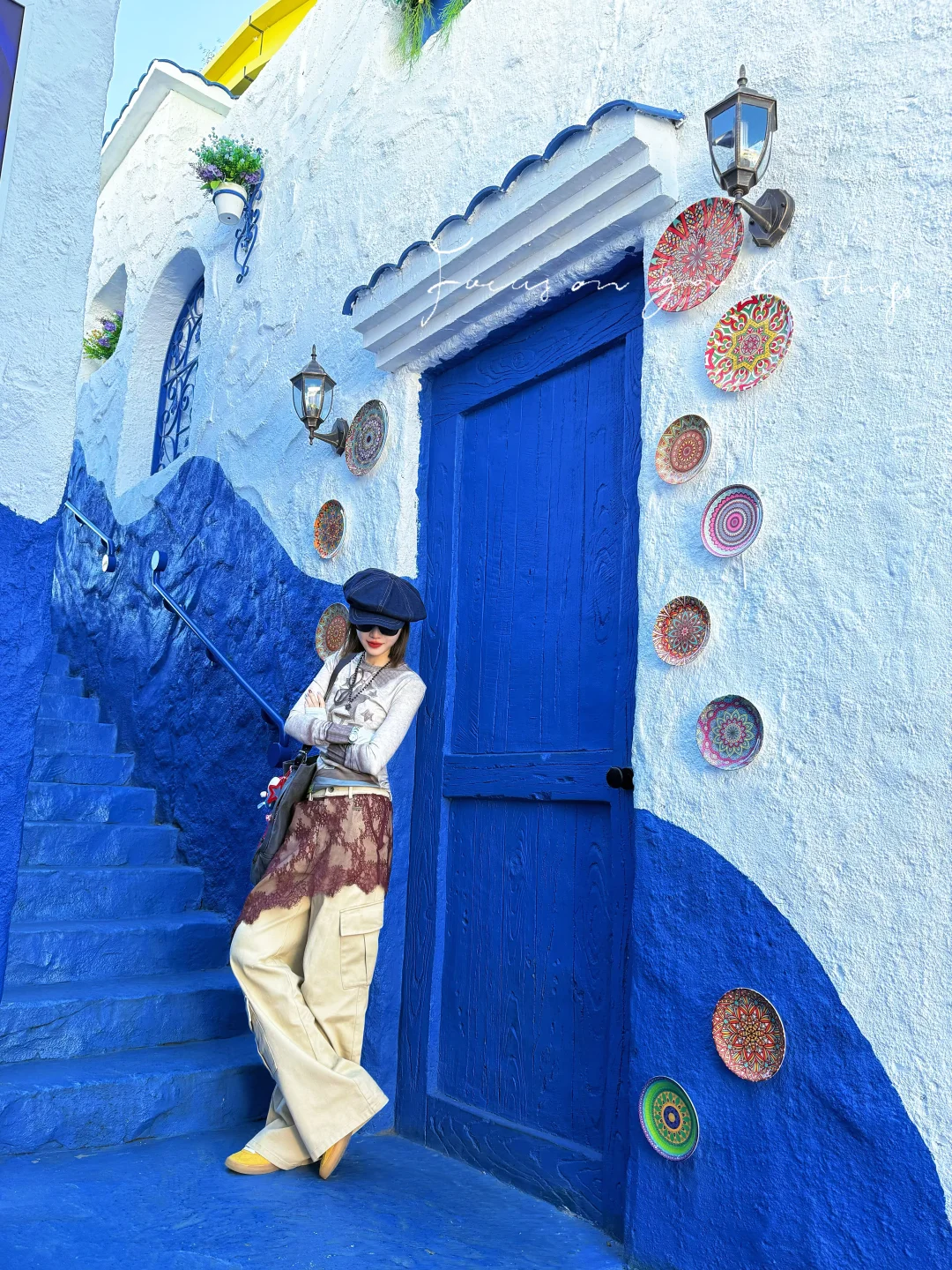 不用出国,闯入童话里的“蓝色小镇”! 白➕克莱因蓝的异域风情建筑💙 随手一拍都是电影感~