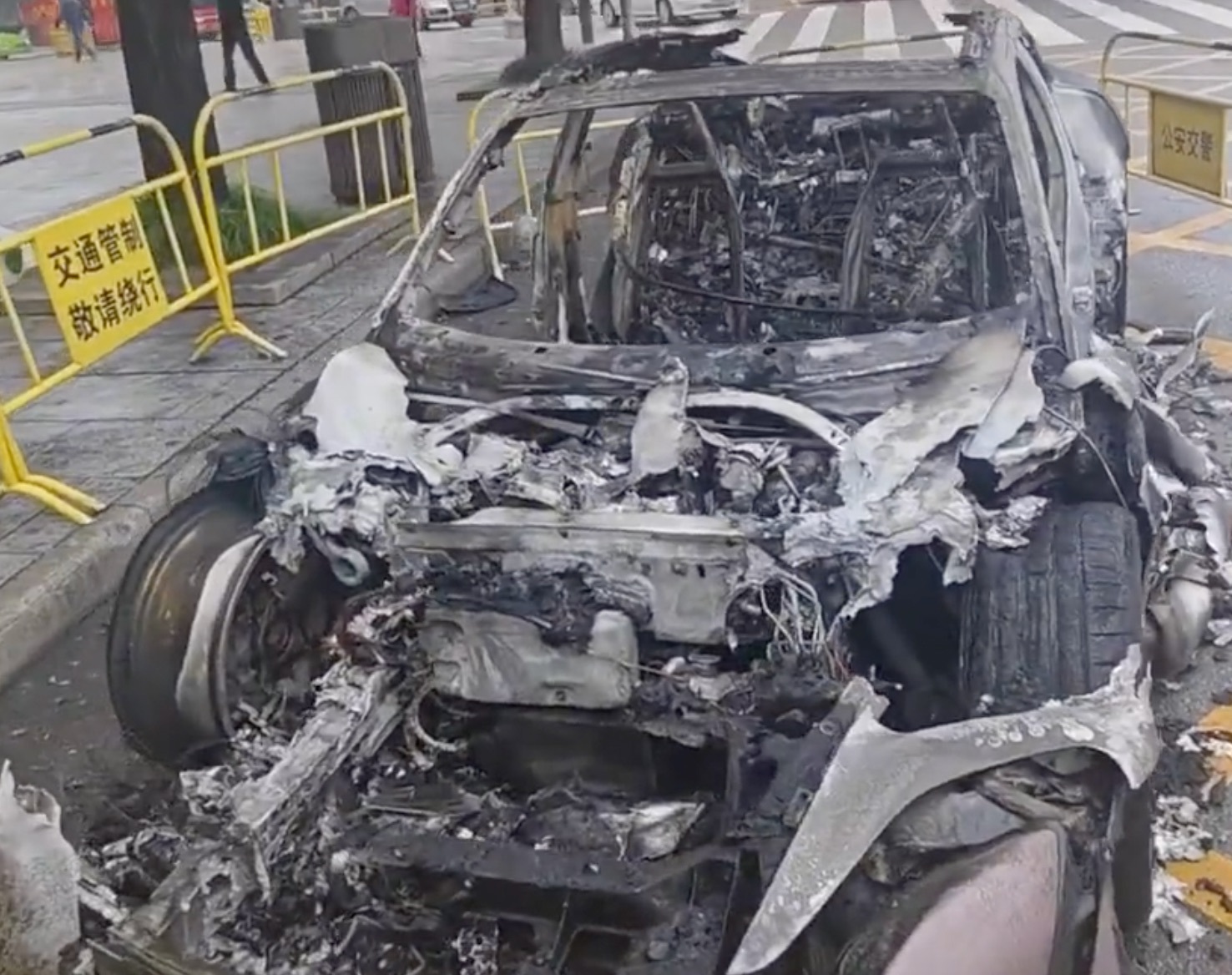 【西安一辆保时捷Taycan突发自燃,车型最低配需91.8万元】据媒体报道,西安曲江一辆保时捷Taycan行驶途中突发自燃起火,车子被烧成空架,消防赶到后将火扑灭,车辆未涉及碰撞,目前起火原因正在调查中。