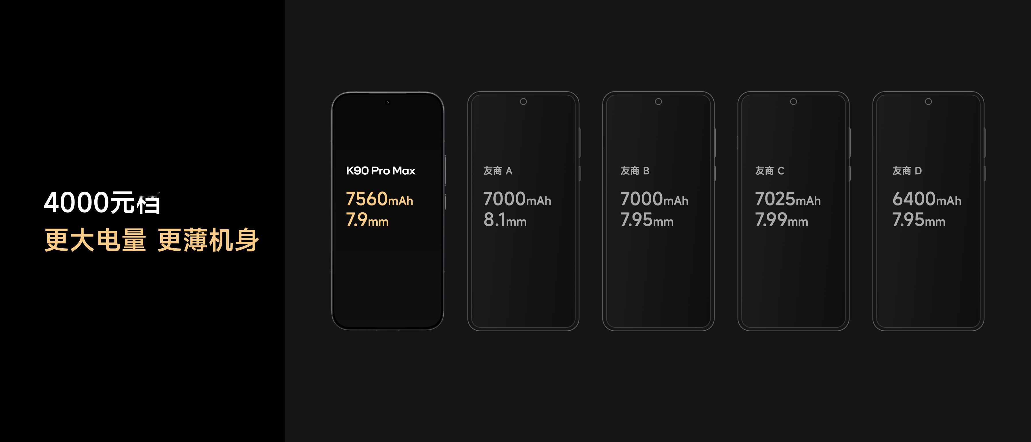 K90ProMax 7560mAh,16%硅含量,是最大小米金沙江电池,应该也是今年机身最薄,电池最大的旗舰机↓