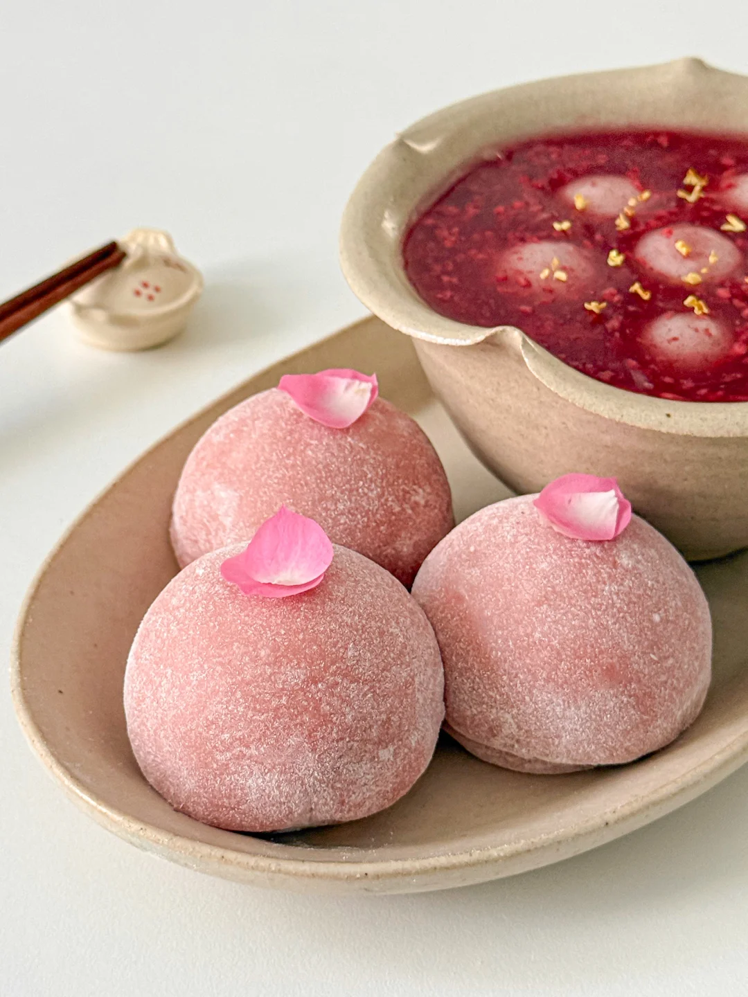 ❶ 🥀红曲酒酿圆子·豆沙乳酪糯米团