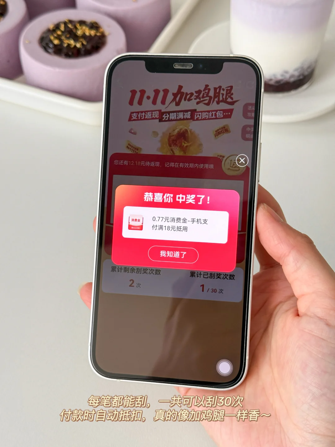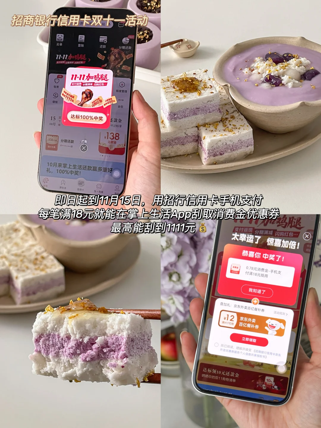 叠加平台立减优惠,越买越开心,建议大家用招行信用卡买买买,有个加鸡腿🍗的活动~手机支付单笔满18元就能在掌上生活App刮奖🎟️最高能刮到1111元消费金💰